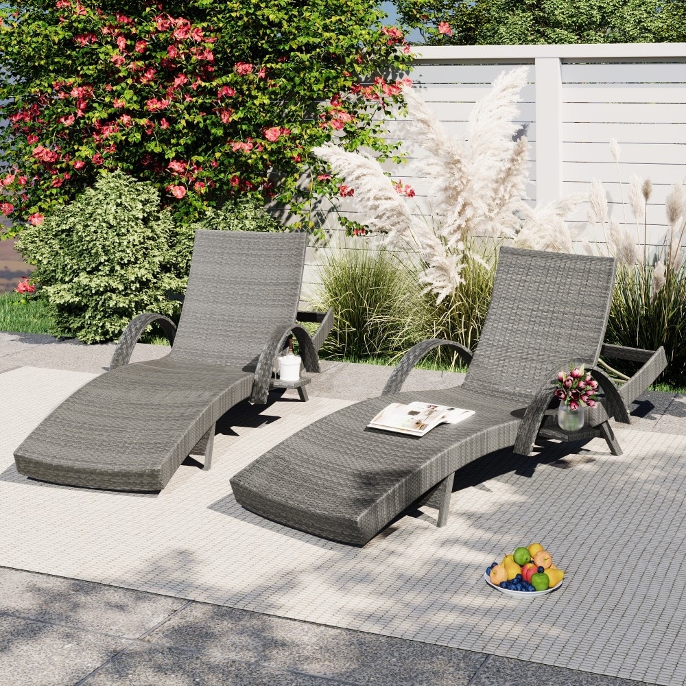 80" Modern Outdoor Wicker Adjustable Backrest Chaise Lounge Chairs(Set of 2)
