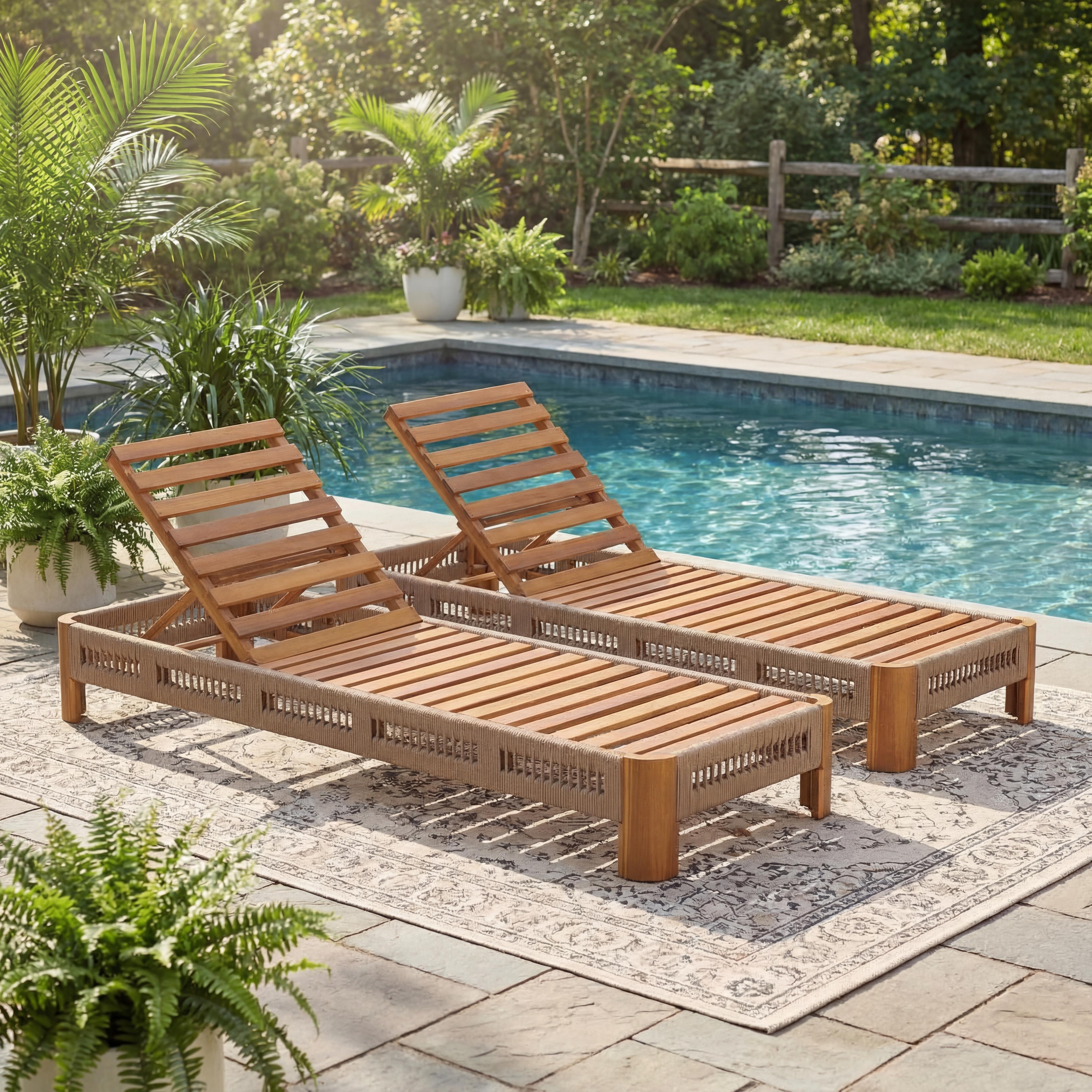 Christopher Knight Home - Delacroix Acacia Wood Outdoor Chaise Lounge with with Adjustable Backrest, Handwoven Rope Accents
