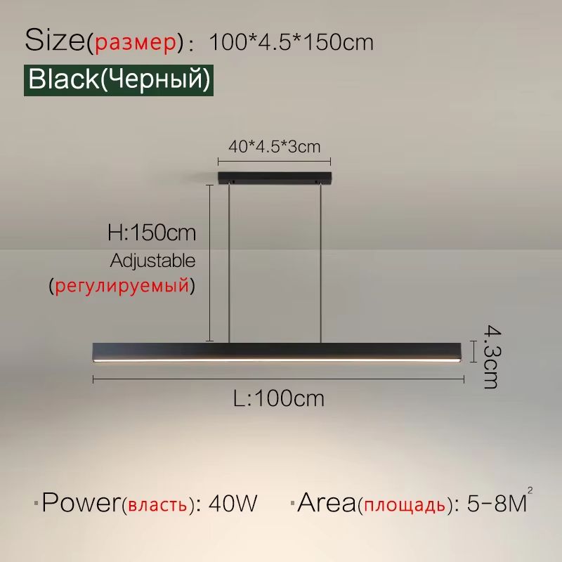 Nordic Modern LED Chandelier Minimalist Dining Table & Kitchen Pendant Light For Home Or Office black L100 Cm dimmable With Remote