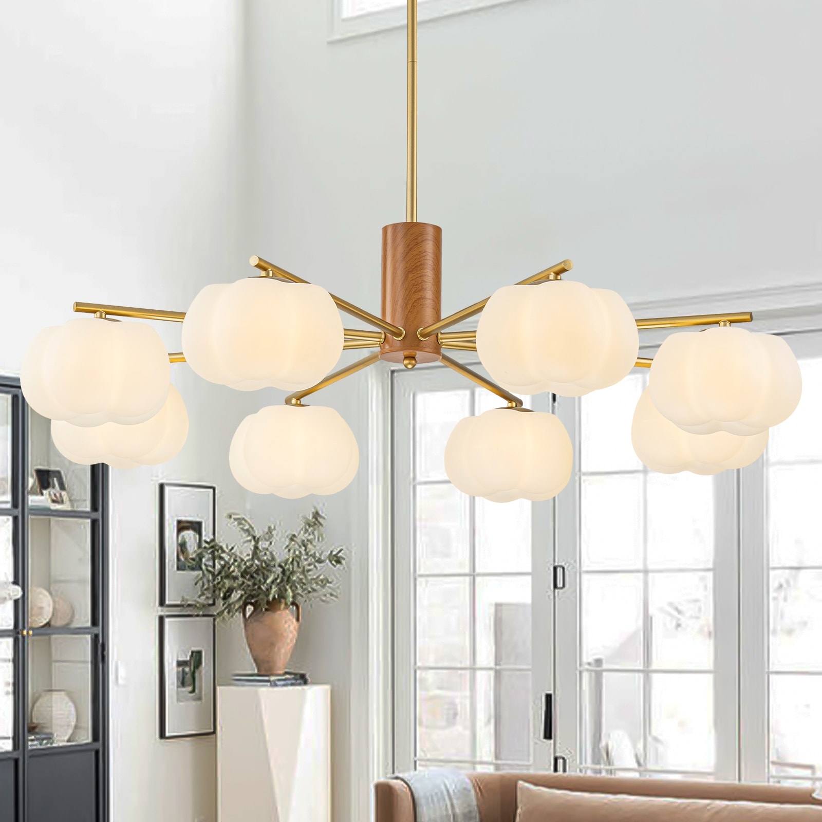 8-Light Modern Sputnik Chandelier with Pumpkin PE Shades - Dia.35.43-in