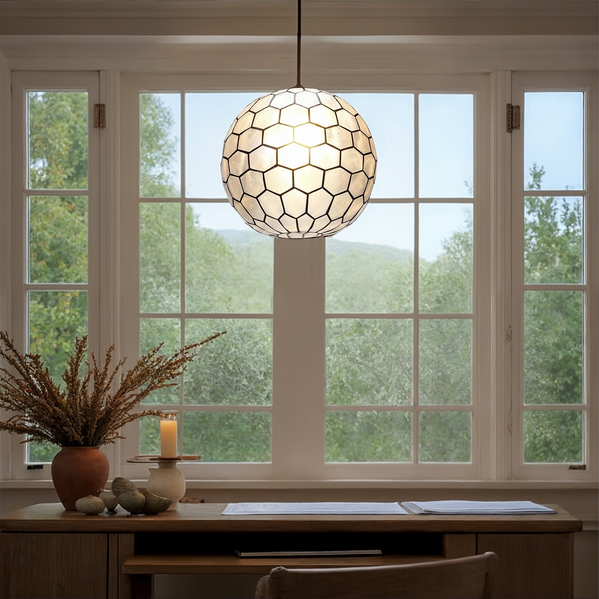 Capiz Honeycomb Globe Pendant Light