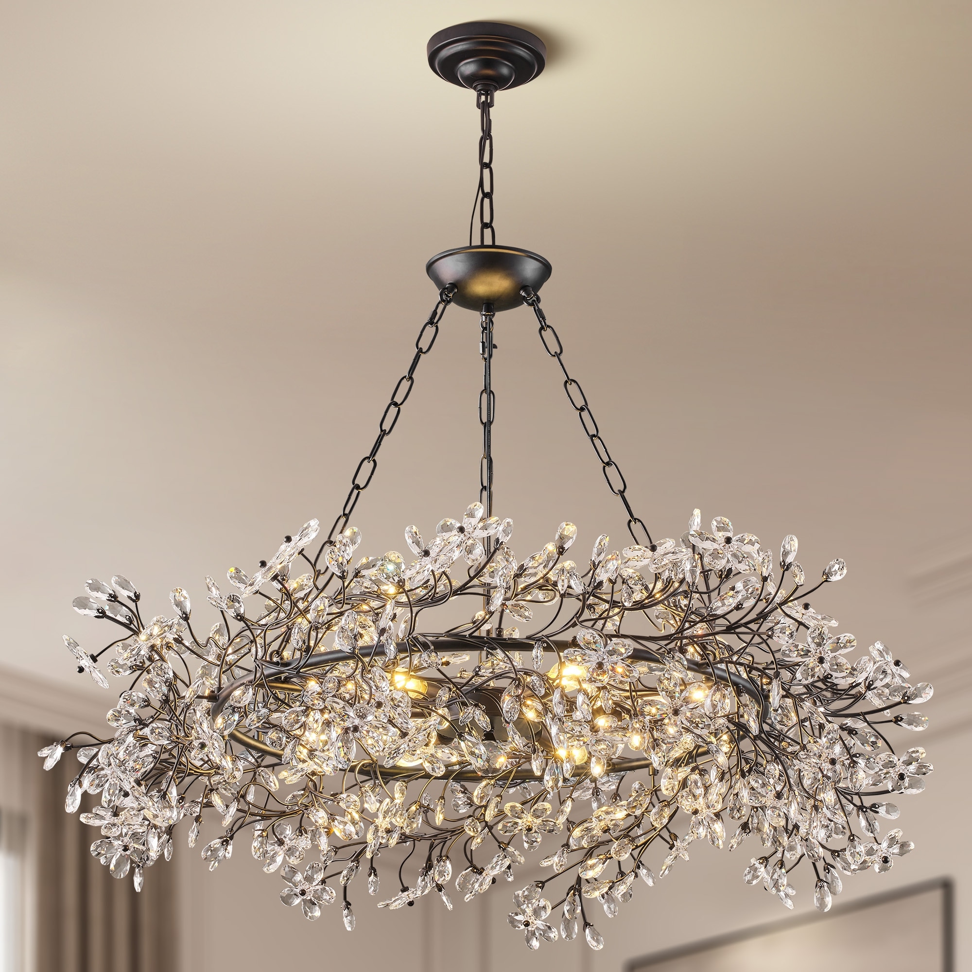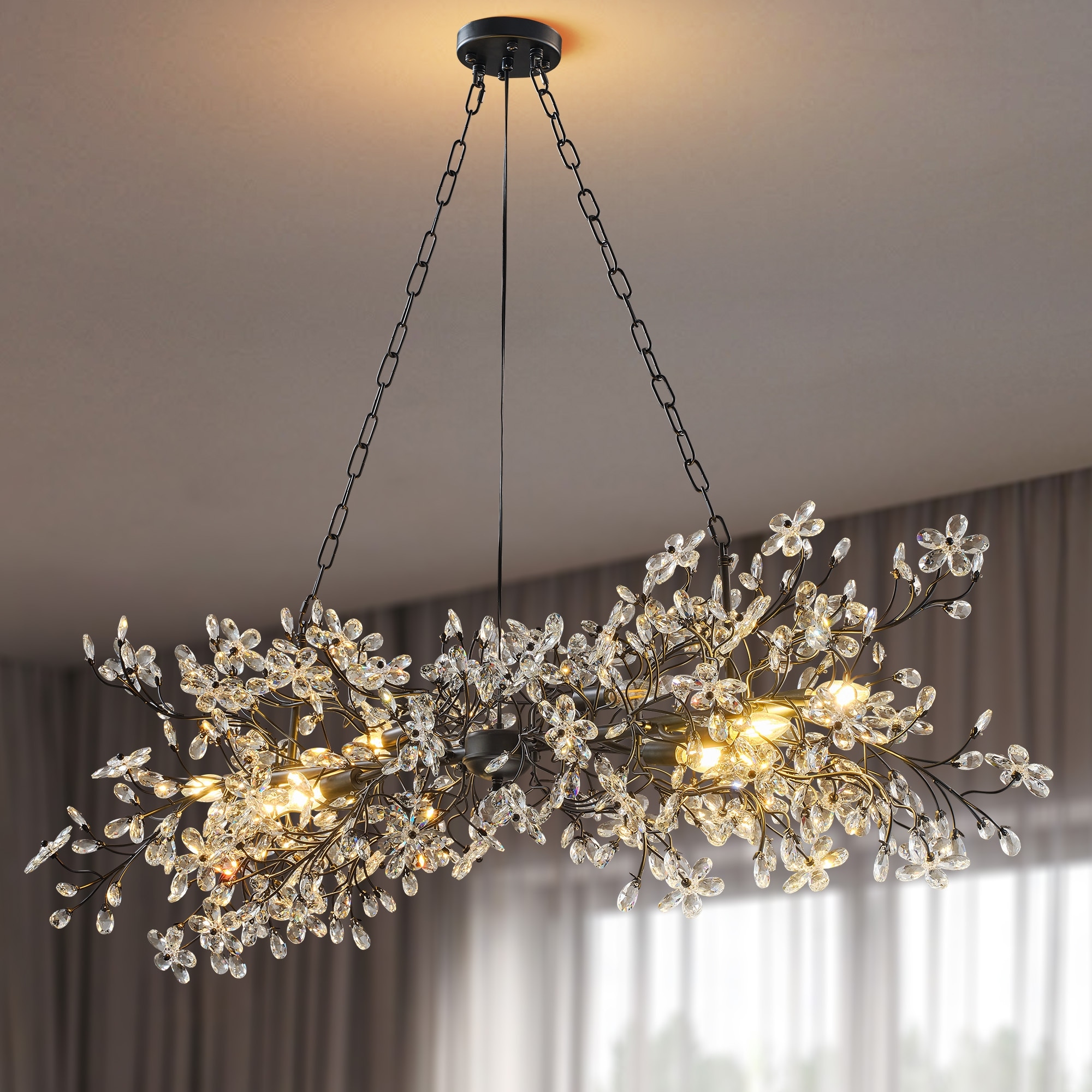 Modern 5-Light Rectangular Crystal Black Chandelier for Dining Room-L34" - 34''-5 Lights