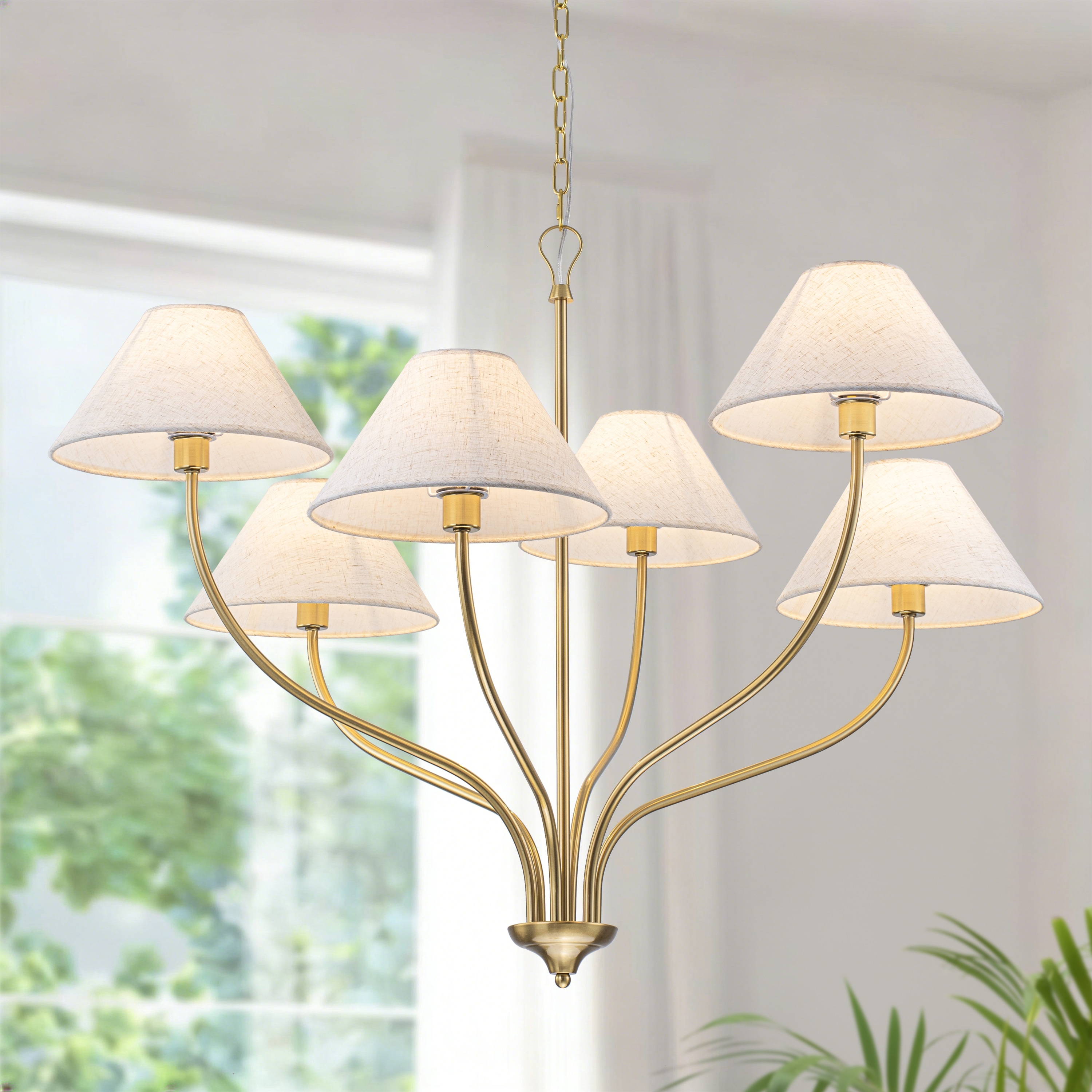 Starsky 6-Light Modern Dimmable Chandelier With White Fabric Shade