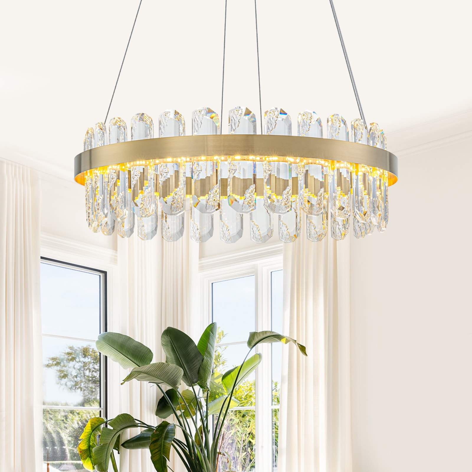 Modern Gold LED Chandelier with Clear Linear Crystals Dimmable - Dia.19.57-in