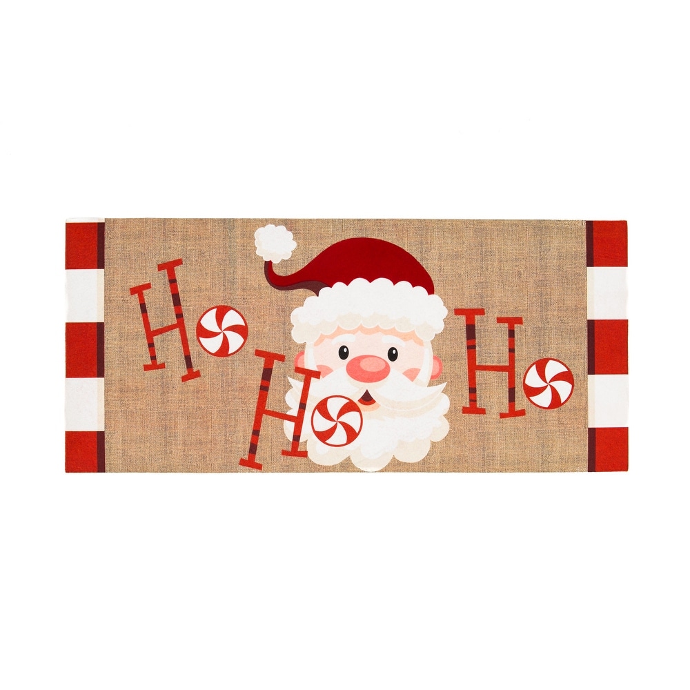 40"L x 18"W Welcome Sentiment Posing Santa Rectangle Indoor Outdoor Estate Coir Door Mat Multicolored on Brown Background