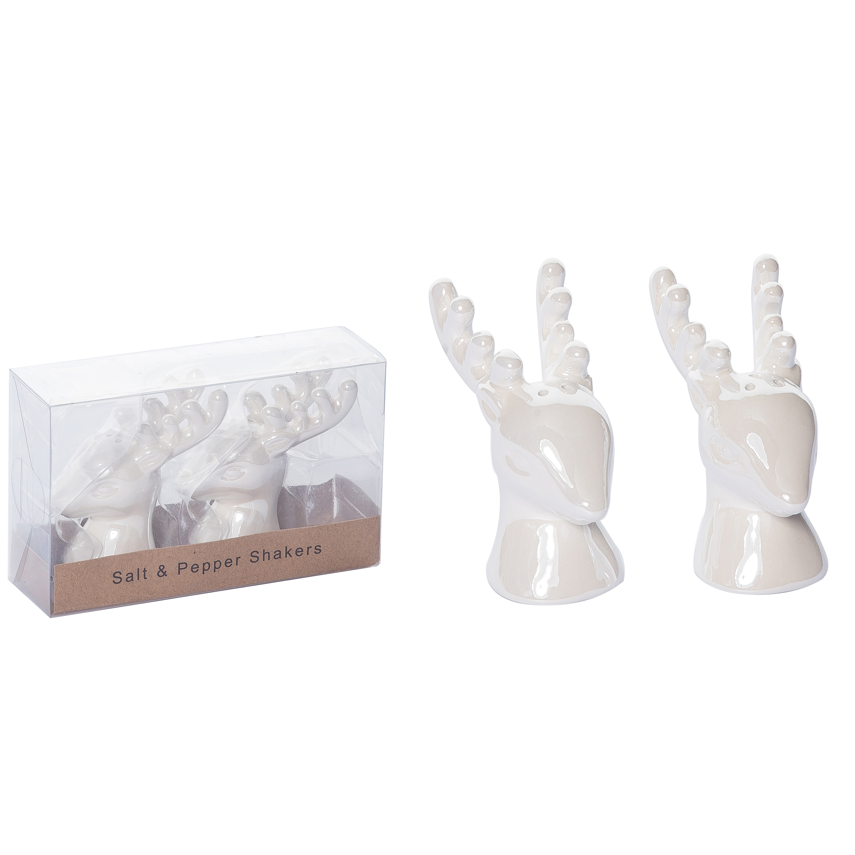 White Christmas Elegant Reindeer Salt and Pepper Shaker Set