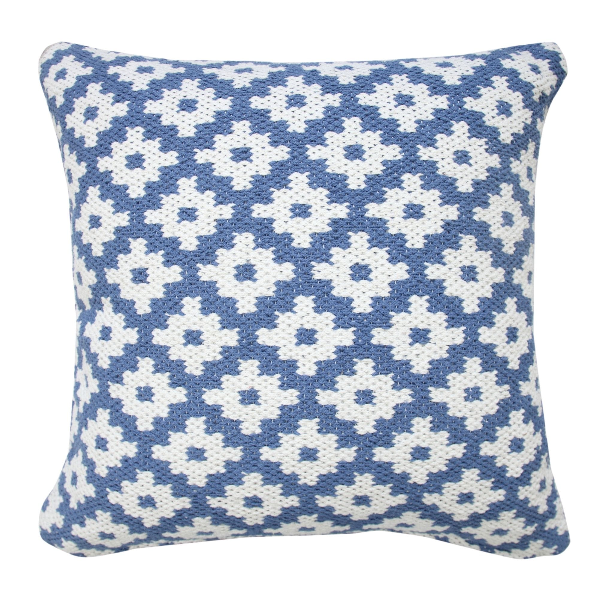 20" Blue and White Swiss Sun Geometric Square Throw Pillow