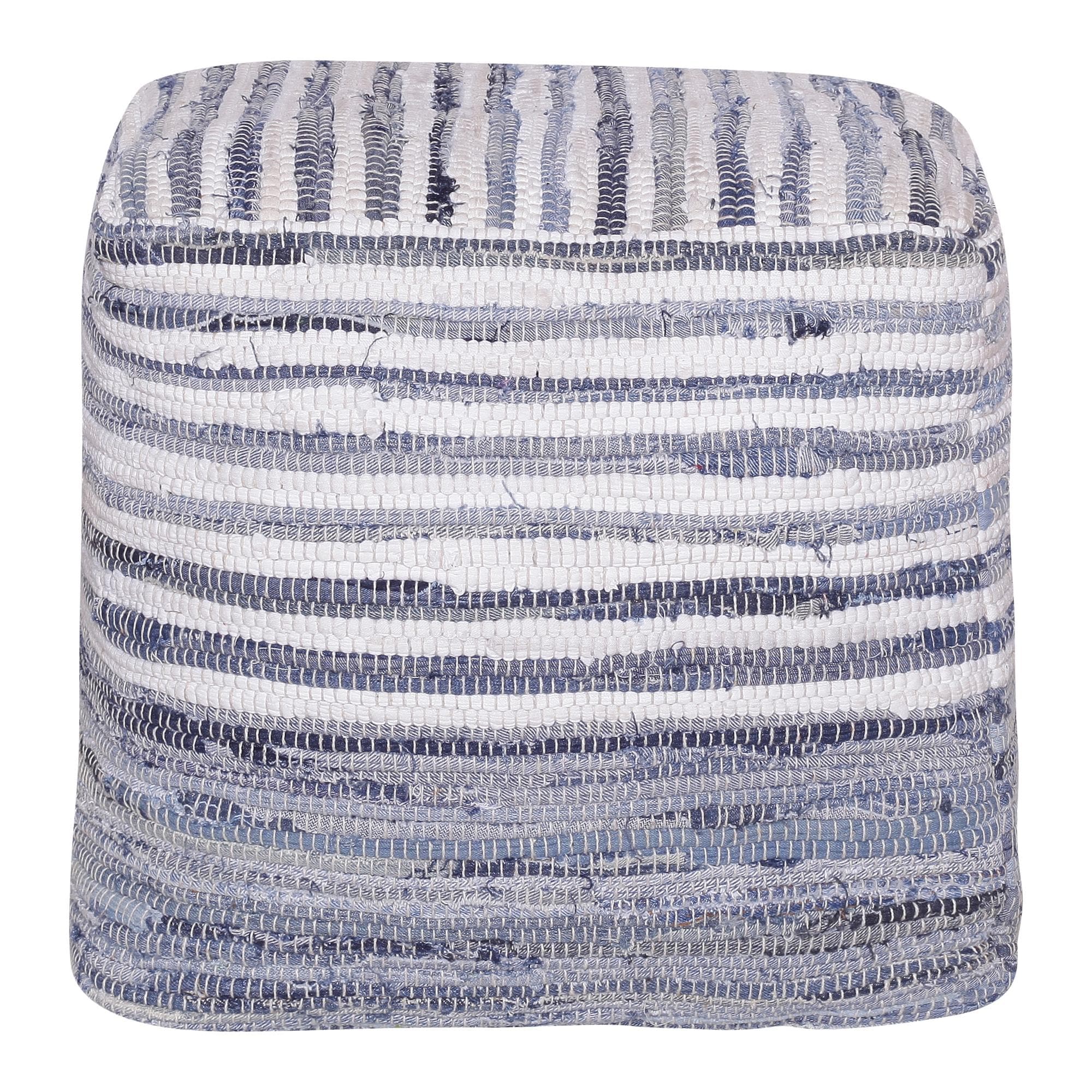 Distressed Striped Square Pouf Ottoman - 18" - Blue and White