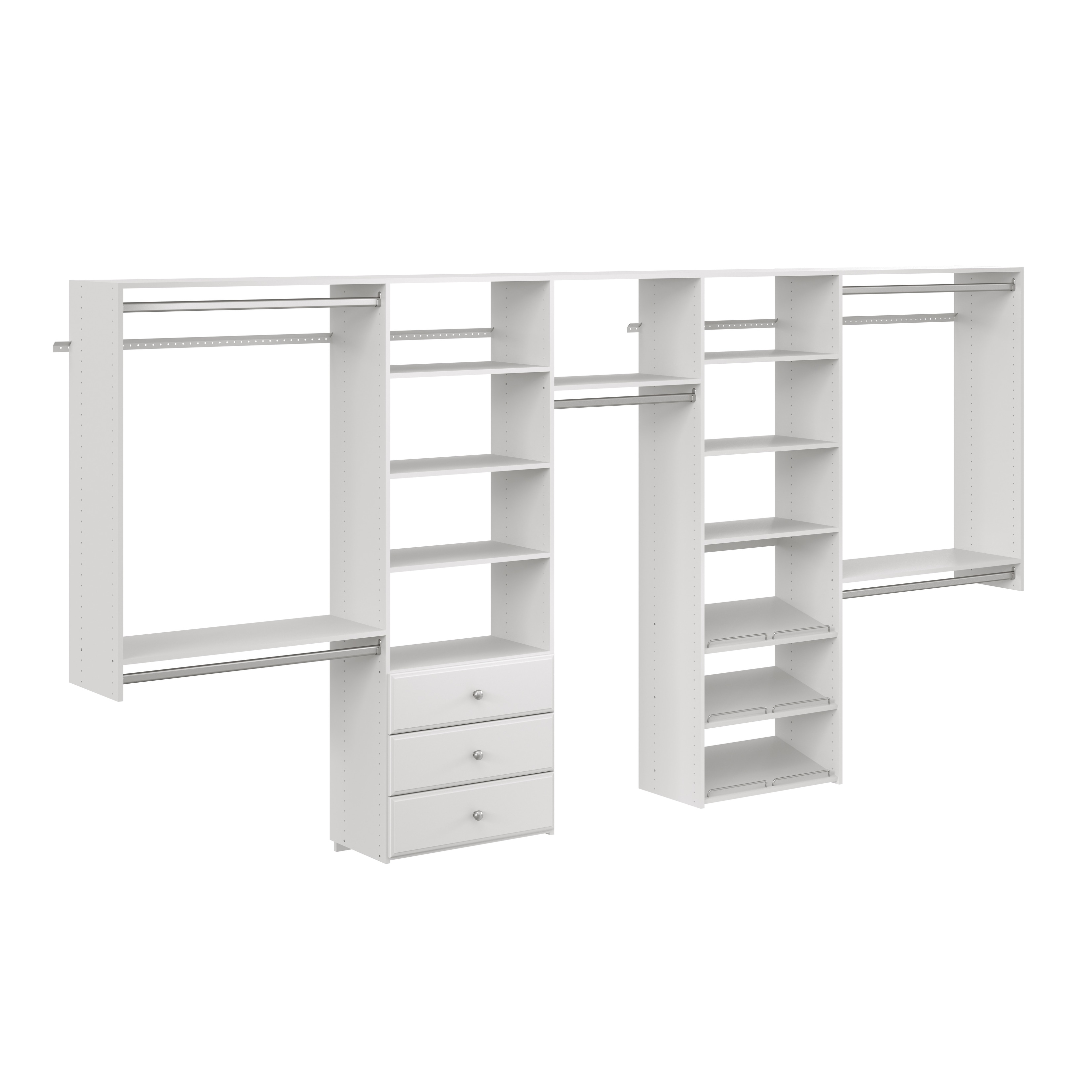 Rackcog 96'' Hanging Closet System with 3 Shelving Towers and 3 Hanging Rods,Wall-Mounted Walk-in Closet Organizer