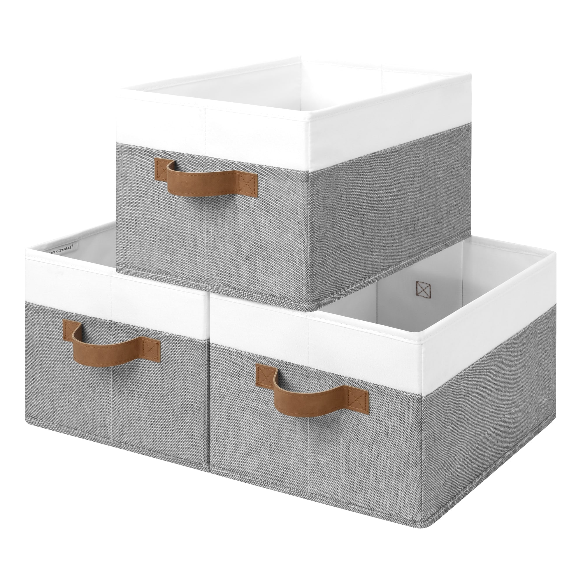 3-pack Fabric Closet Storage Bins with Handles, Clothes Organizer
