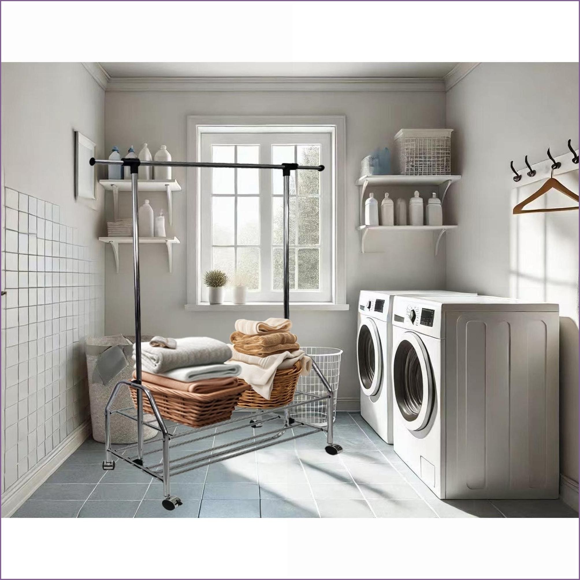 Garment Rack with Extendable Bar & Adjustable Shelf, Chrome Metal