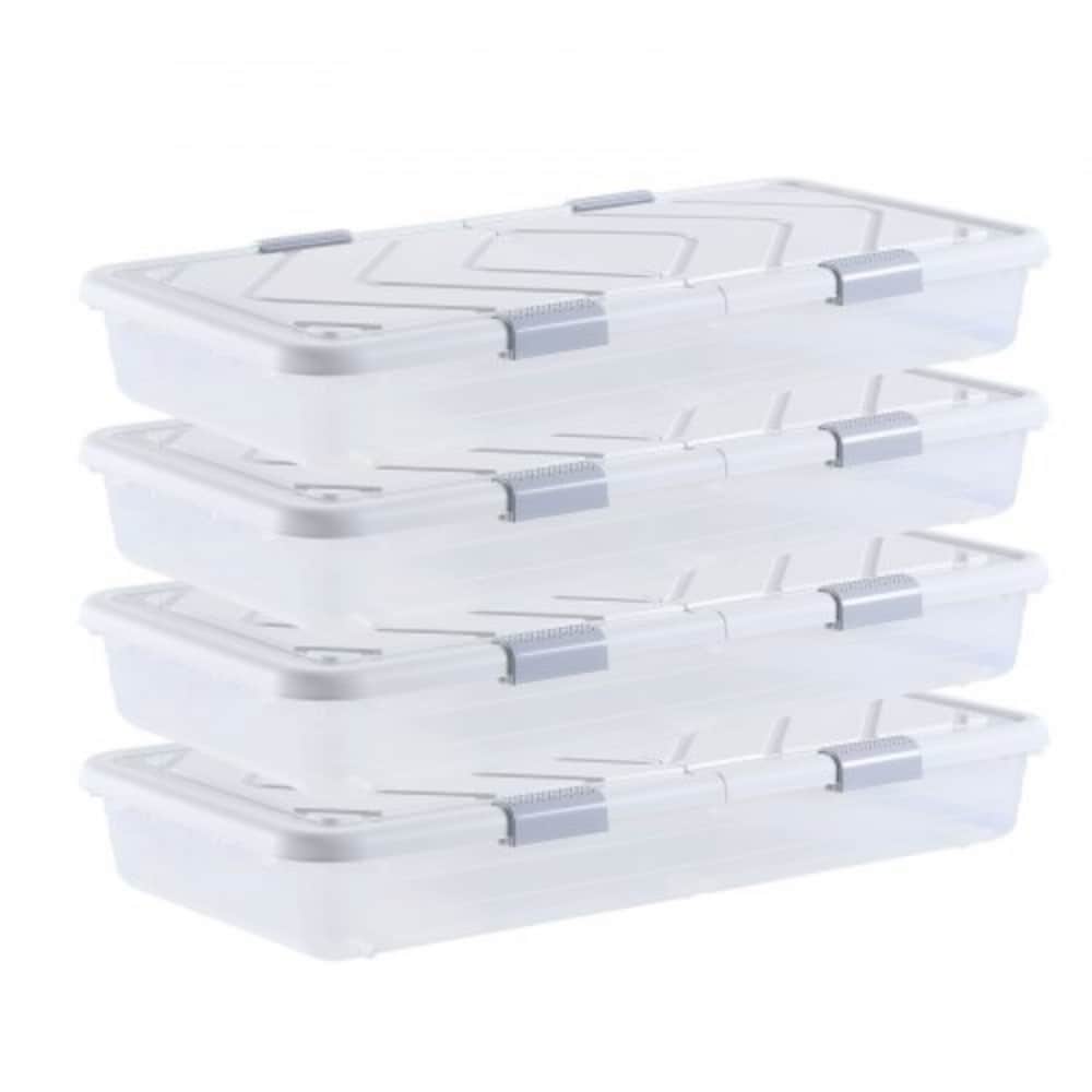 Set of 4 Under Bed Storage Organizer with Wheels 42L Large Capacity Container for Clothes and Shoes - 31.7 x 15.6 x 6.9 inch