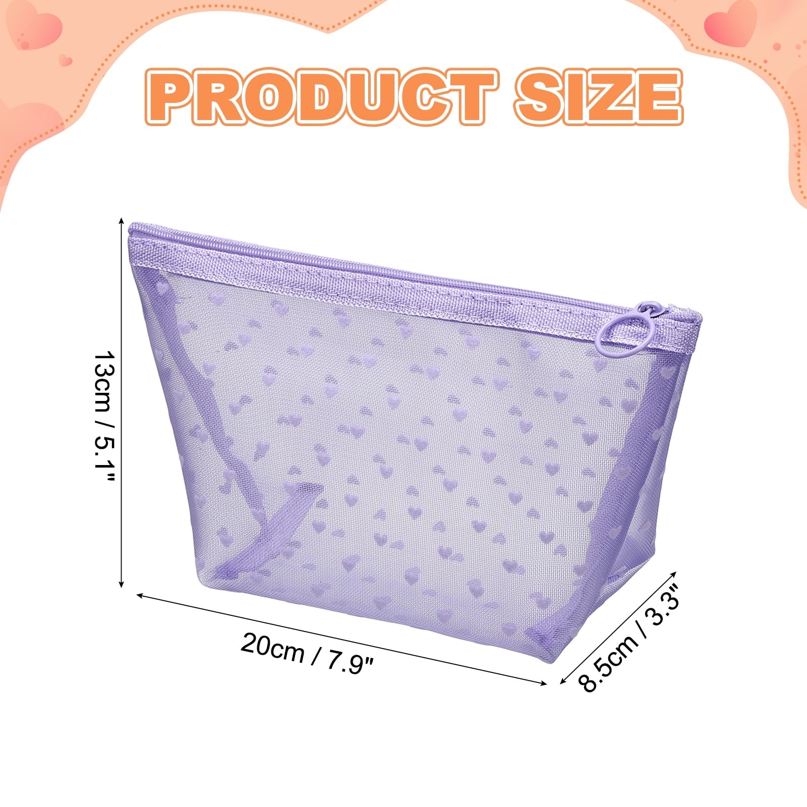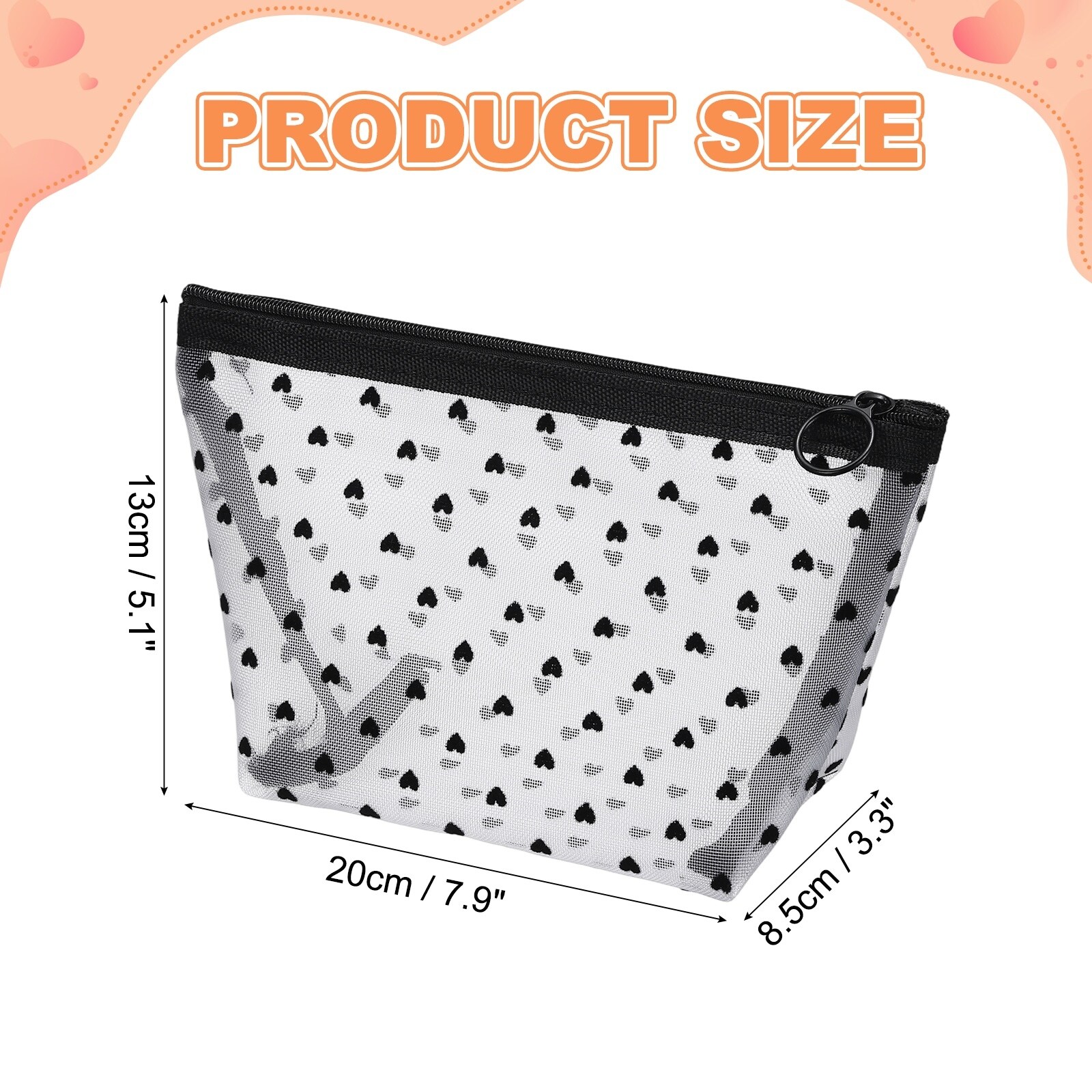 Cute Mini Makeup Bag, Mesh Cosmetic Bag Triangle for Women Small Purse Heart Printed Organizer Pouches with Zipper