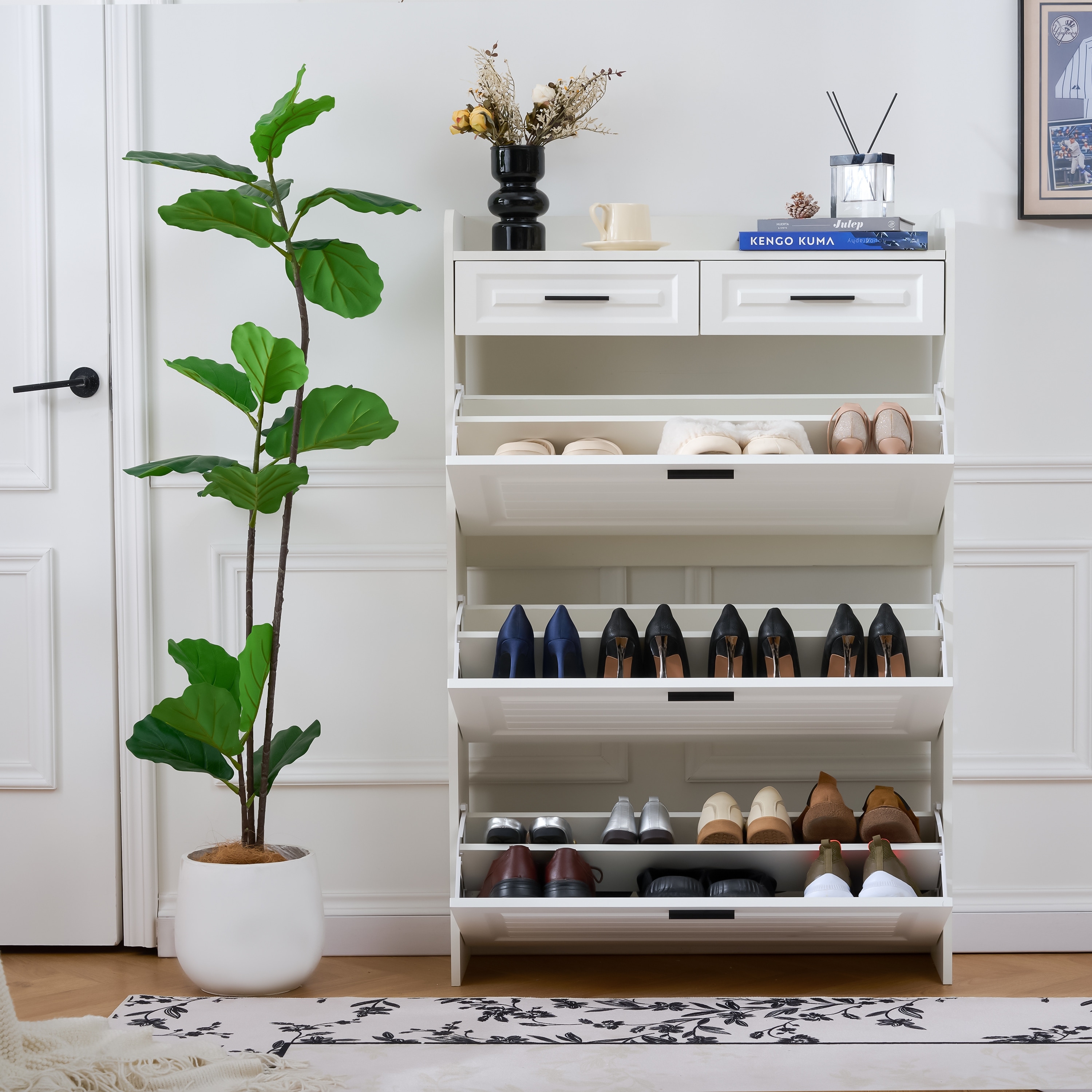 Two drawers, three-fold doors, large storage shoe cabinet, white
