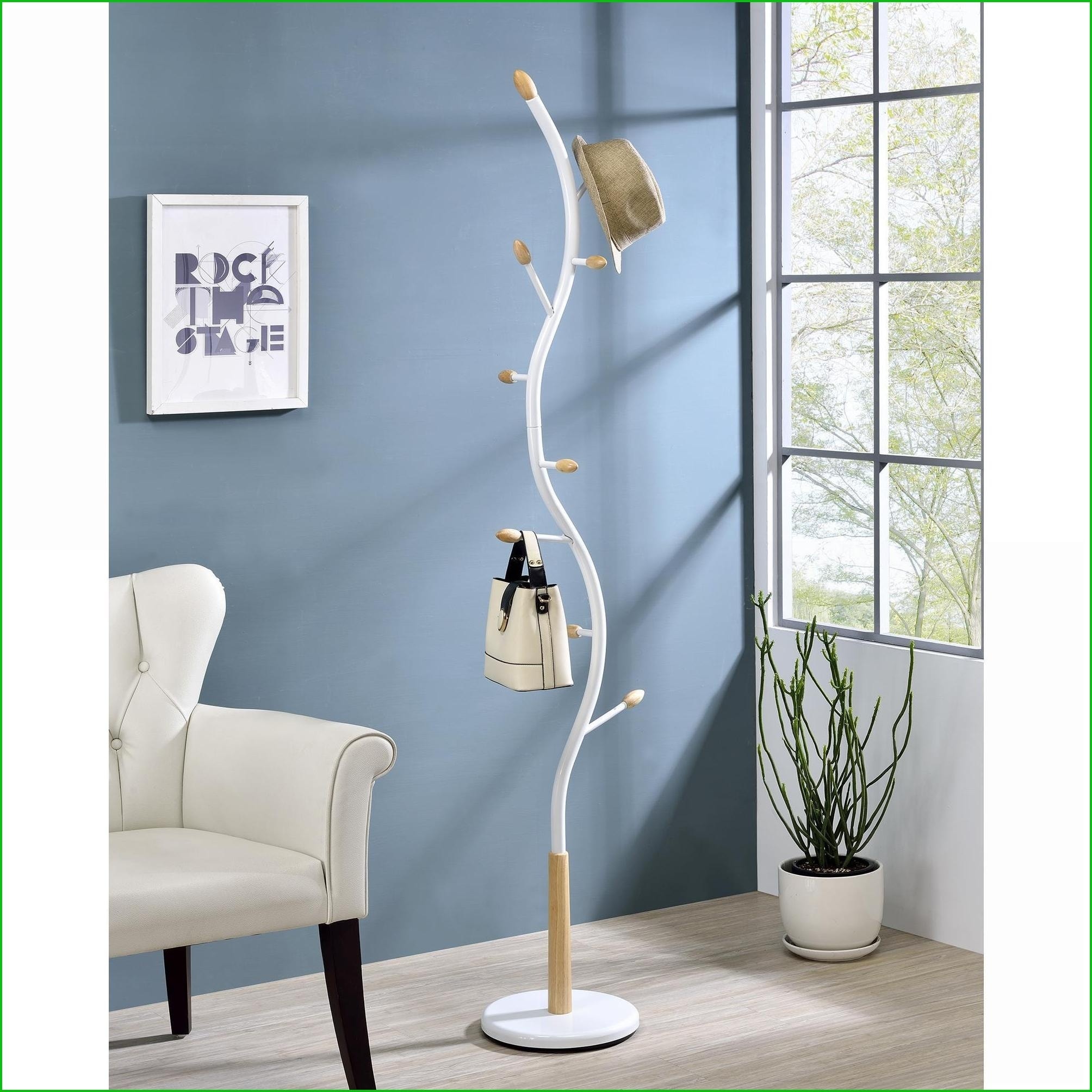 Modern White Metal Coat Rack with Oak Accents, 9 Hooks, White, Coat Racks