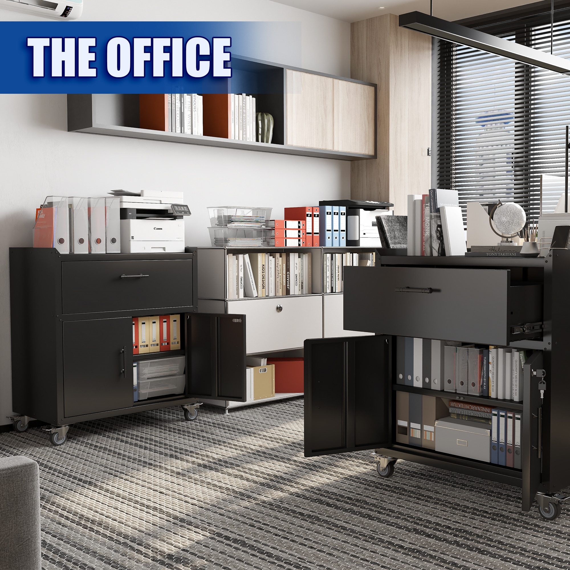 2 Door + 1 Drawer Tool Cabinets, Lockable Garage Storage Cabinet, Locking Metal Storage Cabinet with Wheels, Rolling Tool Chest