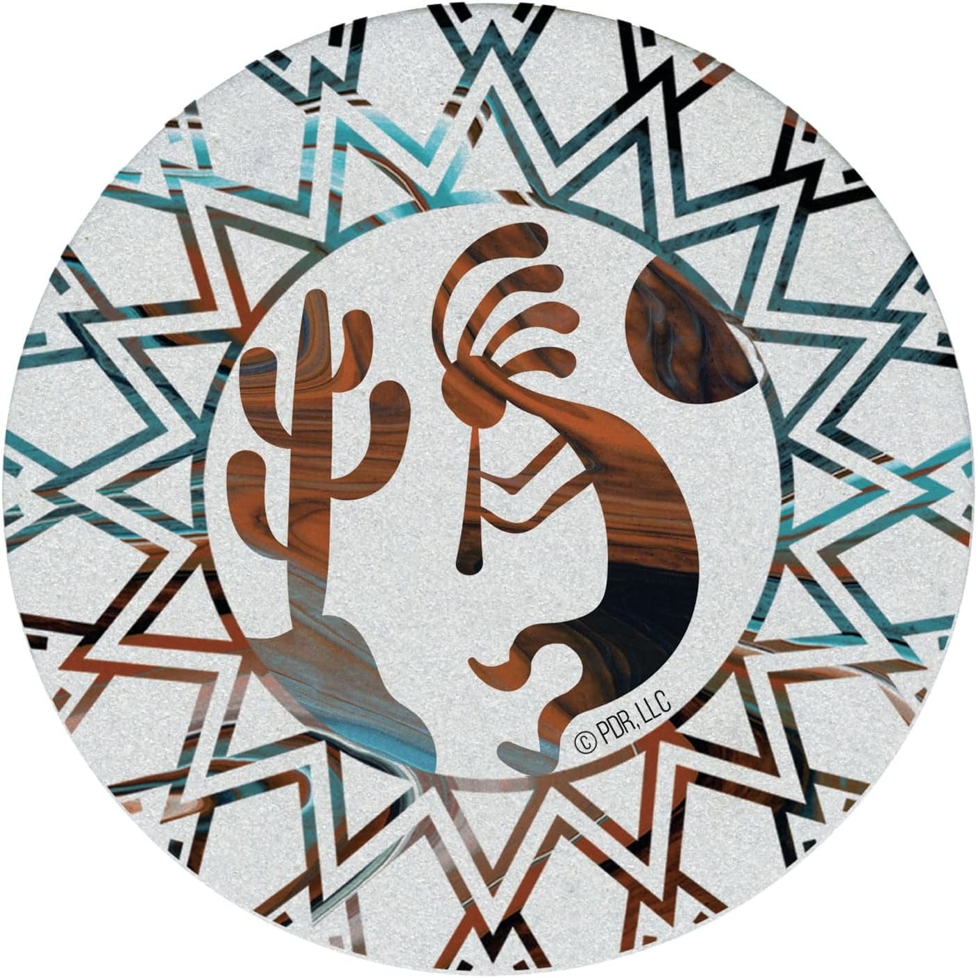Fluid Kokopelli 4-pack Round Natural Sandstone Coaster with Protective Cork Backing Manufactured in The USA 4" Diameter