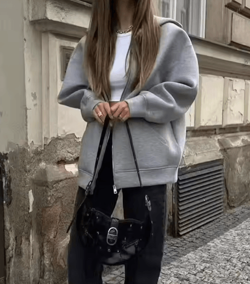HH Autumn Women Gray Jacket With Hood Long Sleeve Big Pocket Zipper Jacket Coat Woman Loose Casual Outerwear Coat Tops dark Grey s(us 4)
