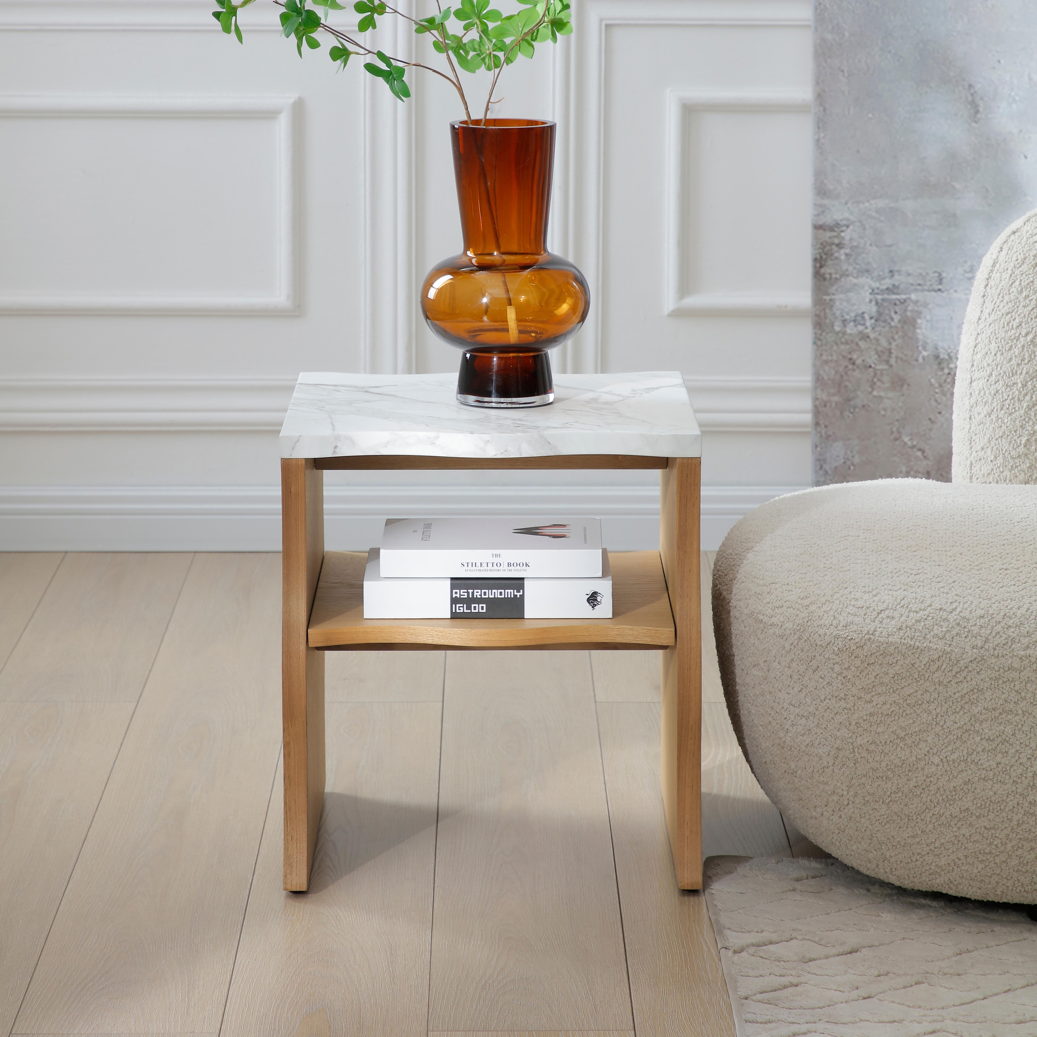 17.72" Whisper of Waves Modern End Table: Storage Shelf Included, Faux Marble Tabletop, Solid Wood Veneered Base. - 17.72"