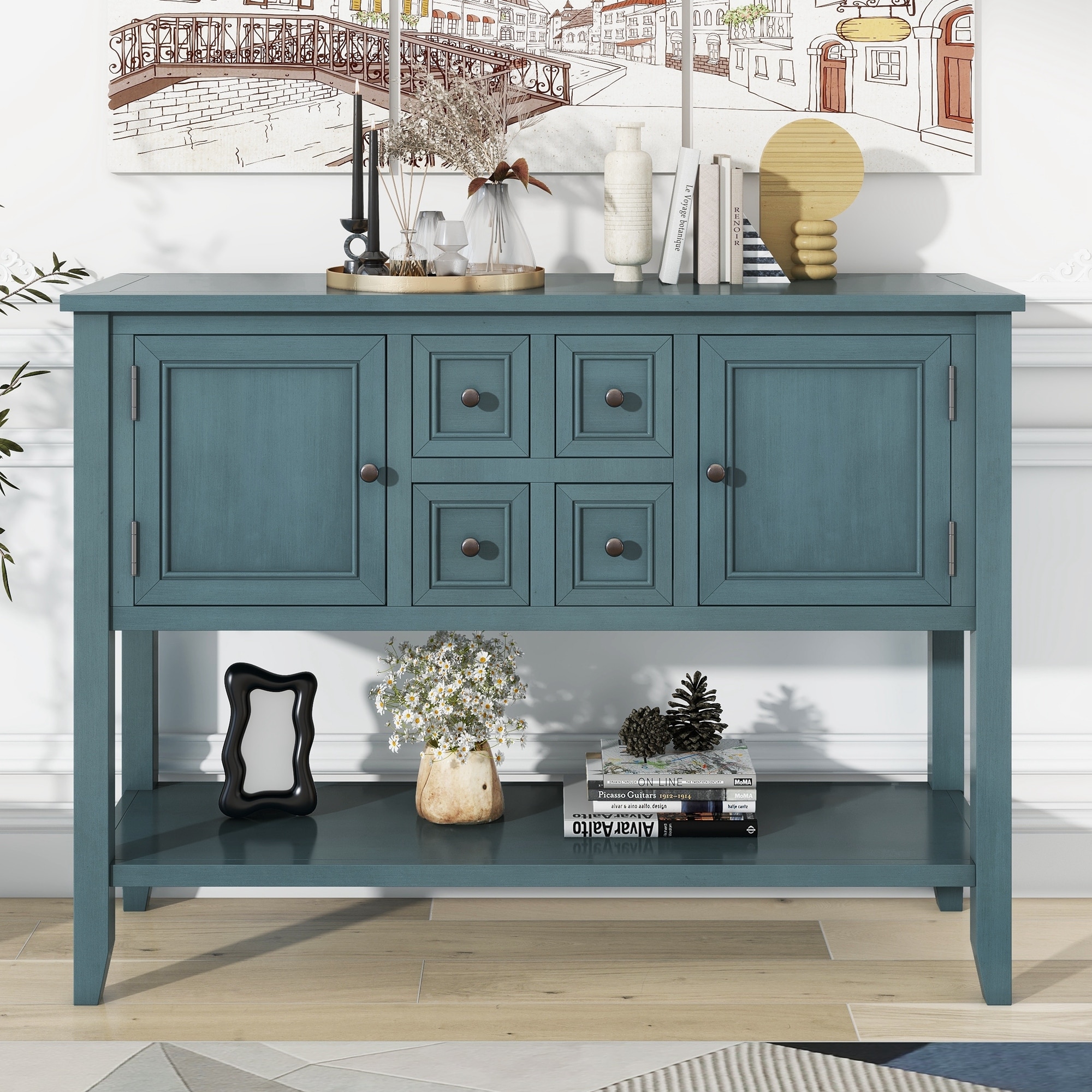 Cambridge Series Ample Storage Vintage Console Table with Four Small Drawers and Bottom Shelf