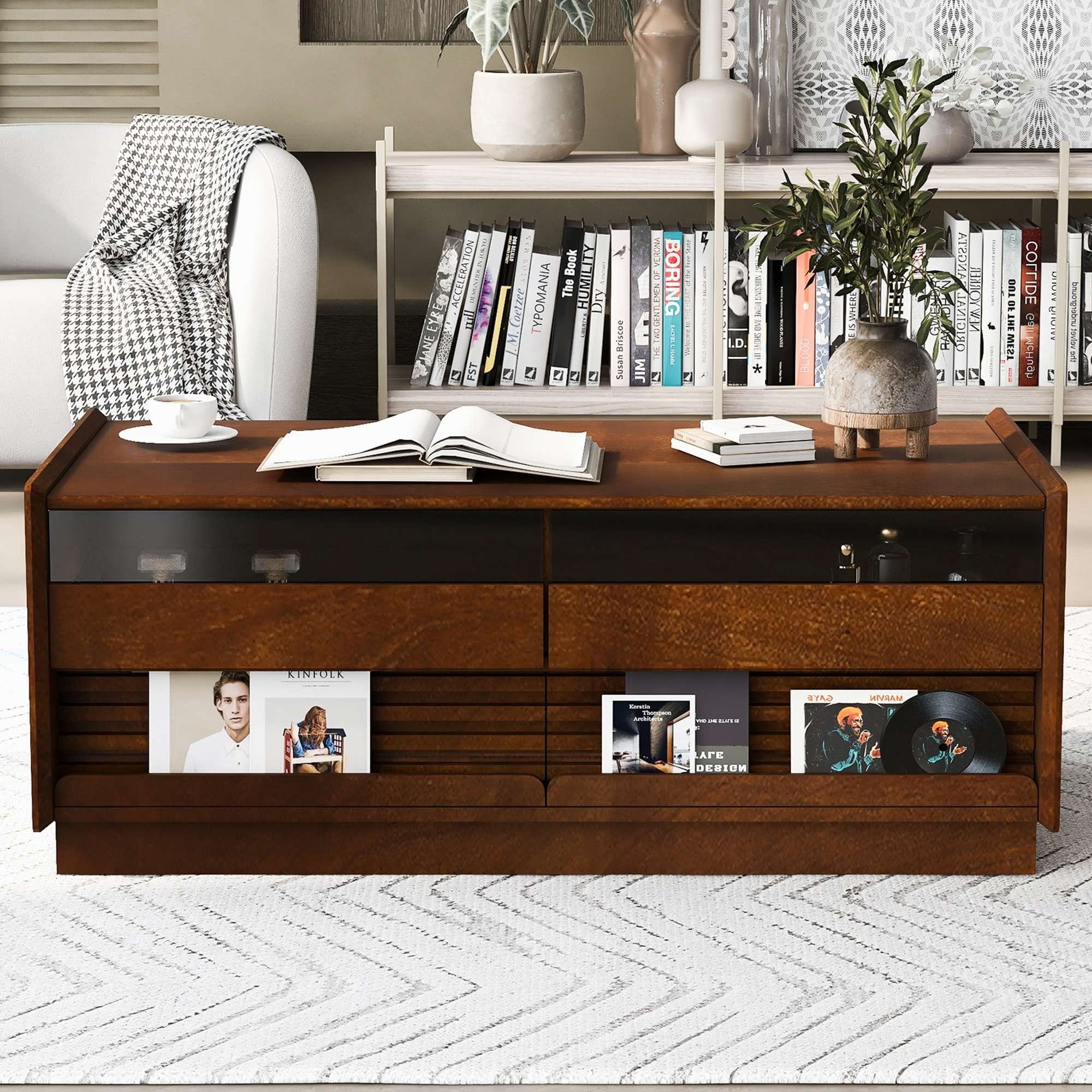 Modern Rectangle Coffee Table with Drawers and Open Shelves