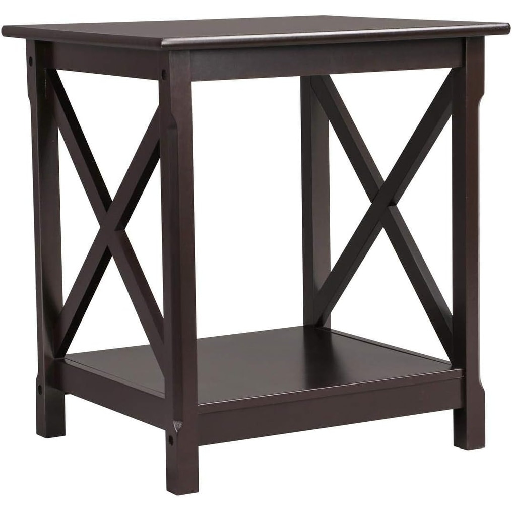 Classic X-Design End Table with Storage Shelf, 2-Tier Sofa Side Table, Dark Coffee Finish, 18x20x22 Inches
