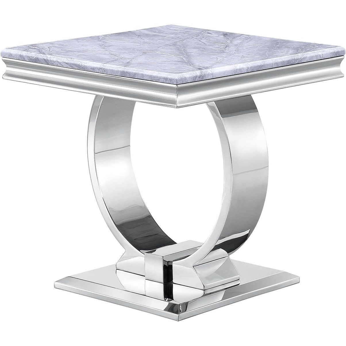 Modern Glam Grey Square Side Table with Mirrored Stainless Steel U-Base for Living Room