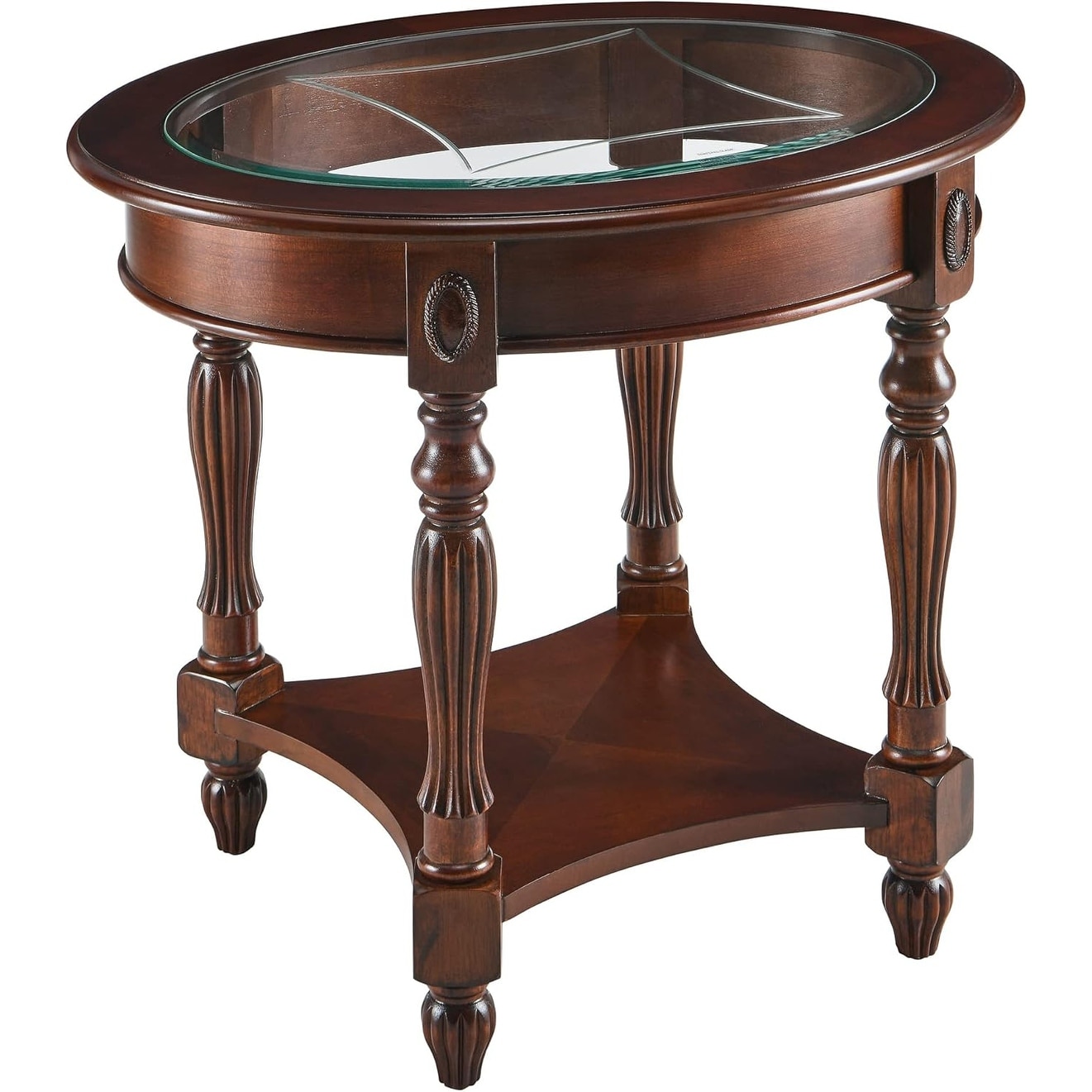 Victorian-Style 2-Tier Oval Glass End Table with Solid Wood Frame, 28inch W x 22inch D x 24.2inch H