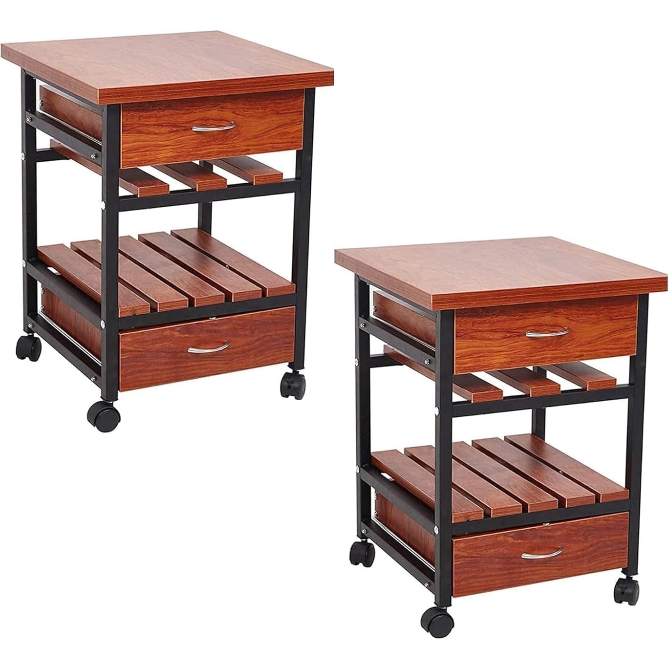 Modern Rolling Nightstand with Storage, 3-Tier Portable End Table with Wheels and Drawers for Bedroom or Living Room