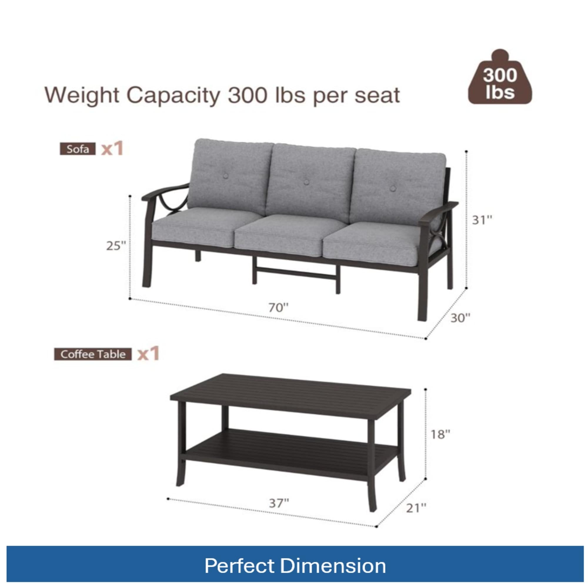 Two Piece Outdoor Patio Set All Weather Metal Three Seat Sofa Rectangular Coffee Table