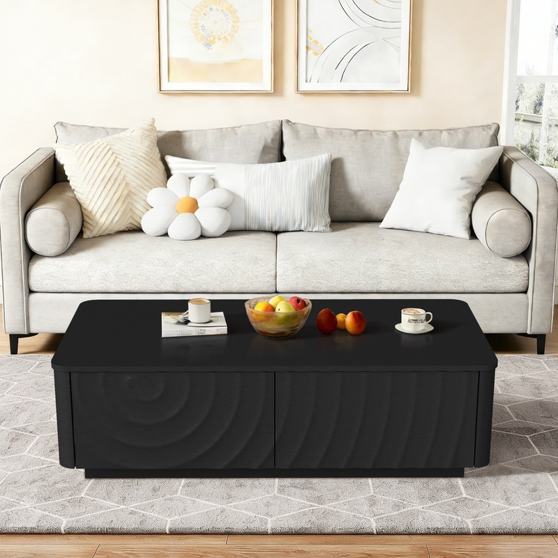 Mid Century 47" Rectangle Coffee Table with Unique Wave Texture and Safe Rounded Corner Design for Living Room