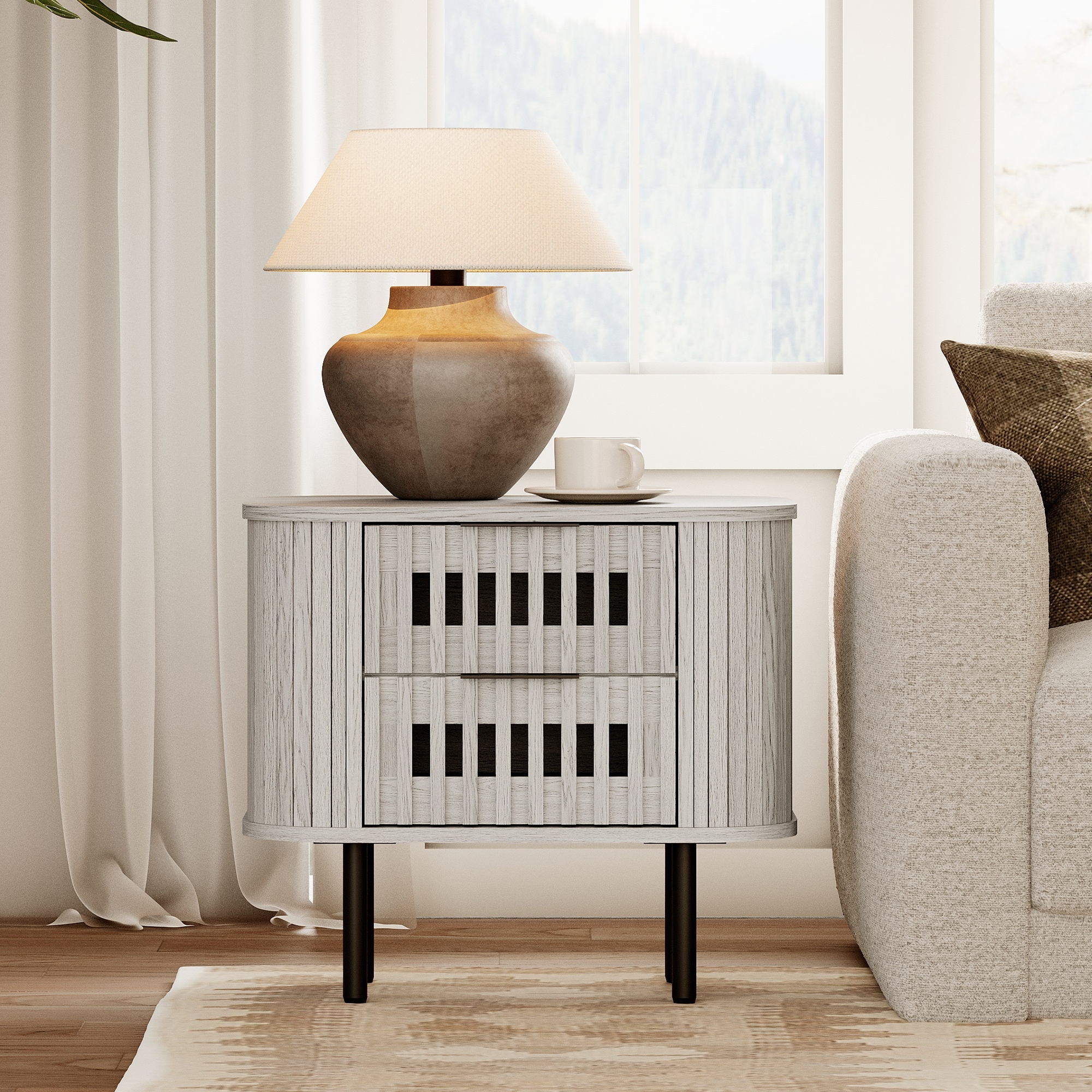 WAMPAT Fluted Modern End Table with 2 Drawers