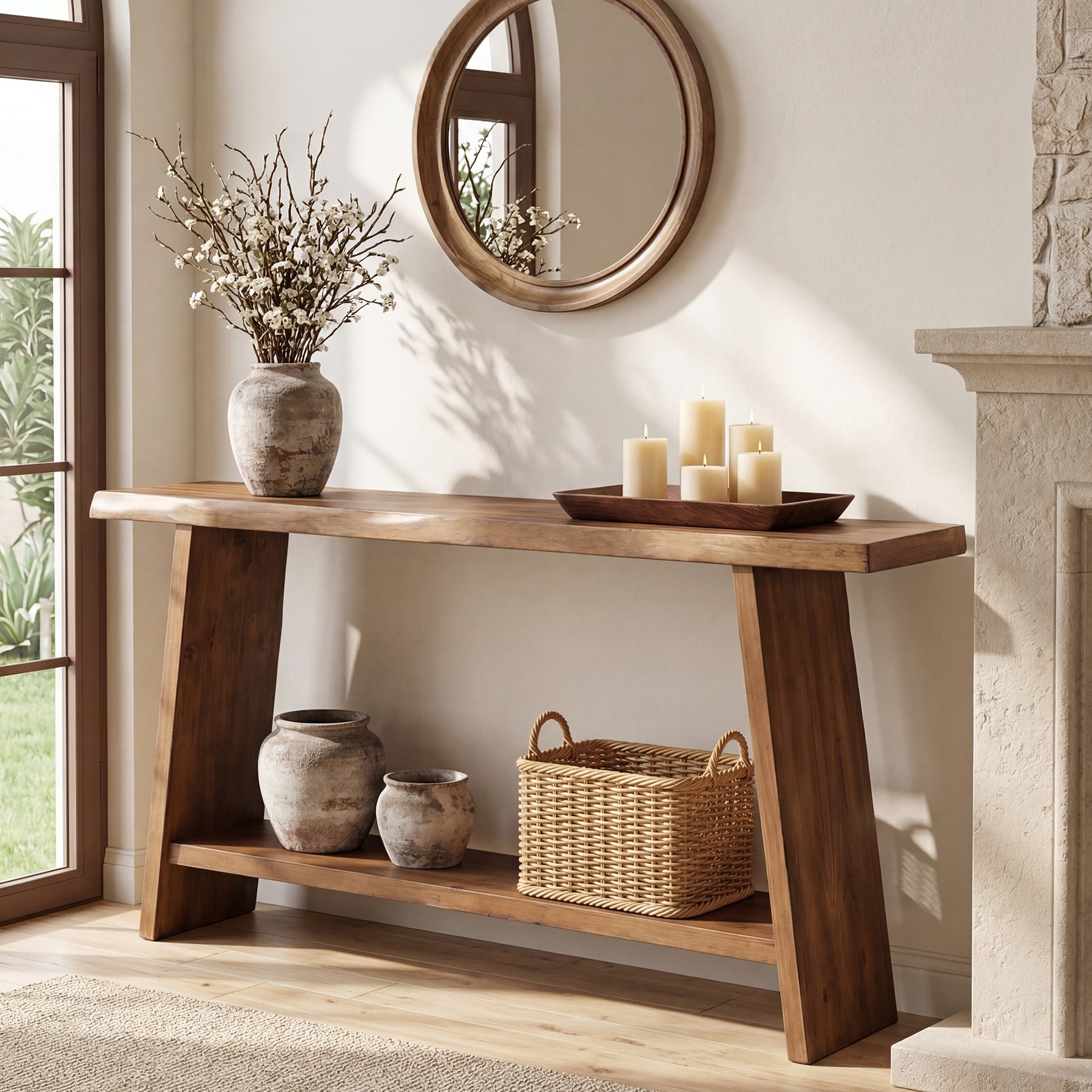 Console Table with Storage Shelf, 62.99" Solid Wood Entryway Table
