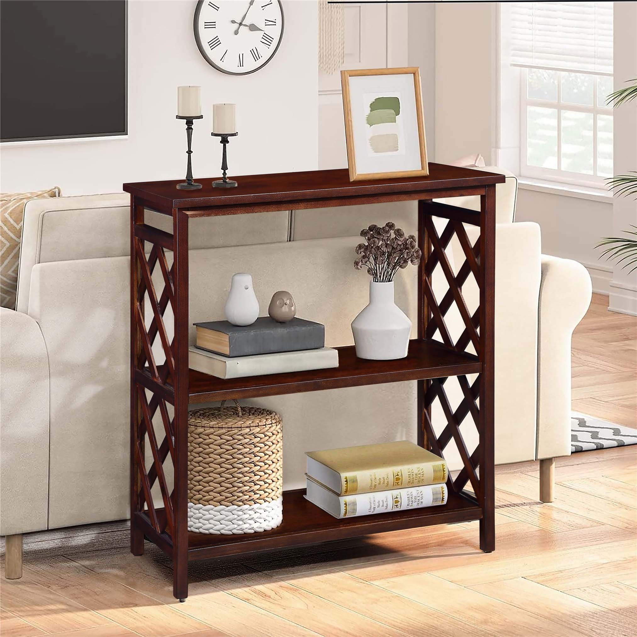Versatile 3-Tier Console Table with Storage Shelves and Solid Wood Legs