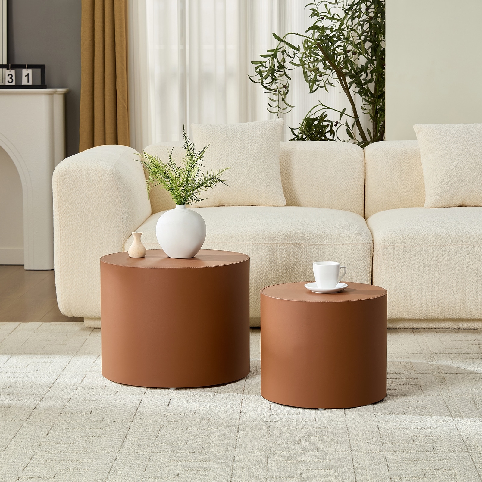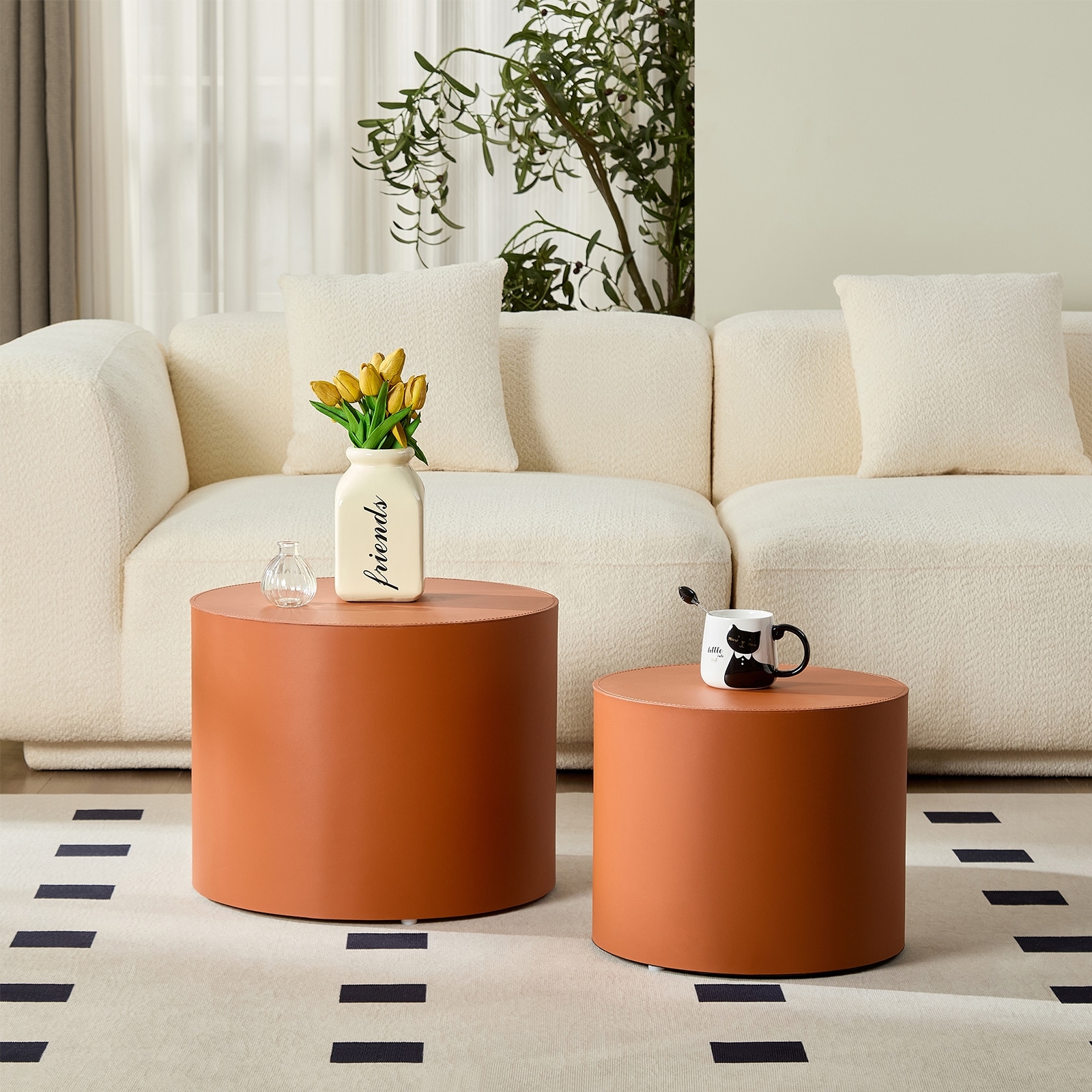 Rossetta Modern Small Round Vibrant Color Hue Saddle Leather Table Set of 2