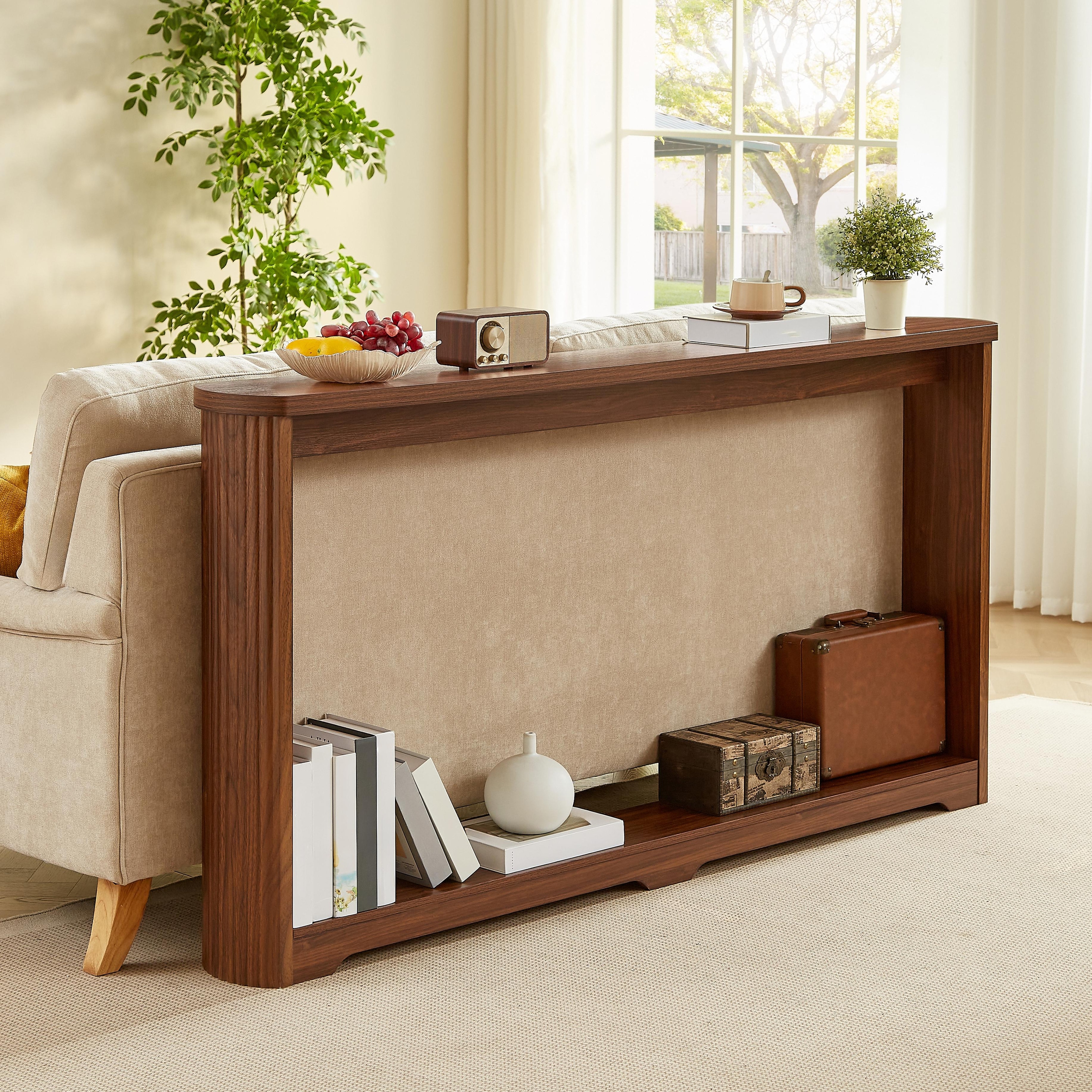 Console Table Side Table with Bottom Shelf, Rustic Side Table Hallway Table Walnut Entryway Table for Living Room