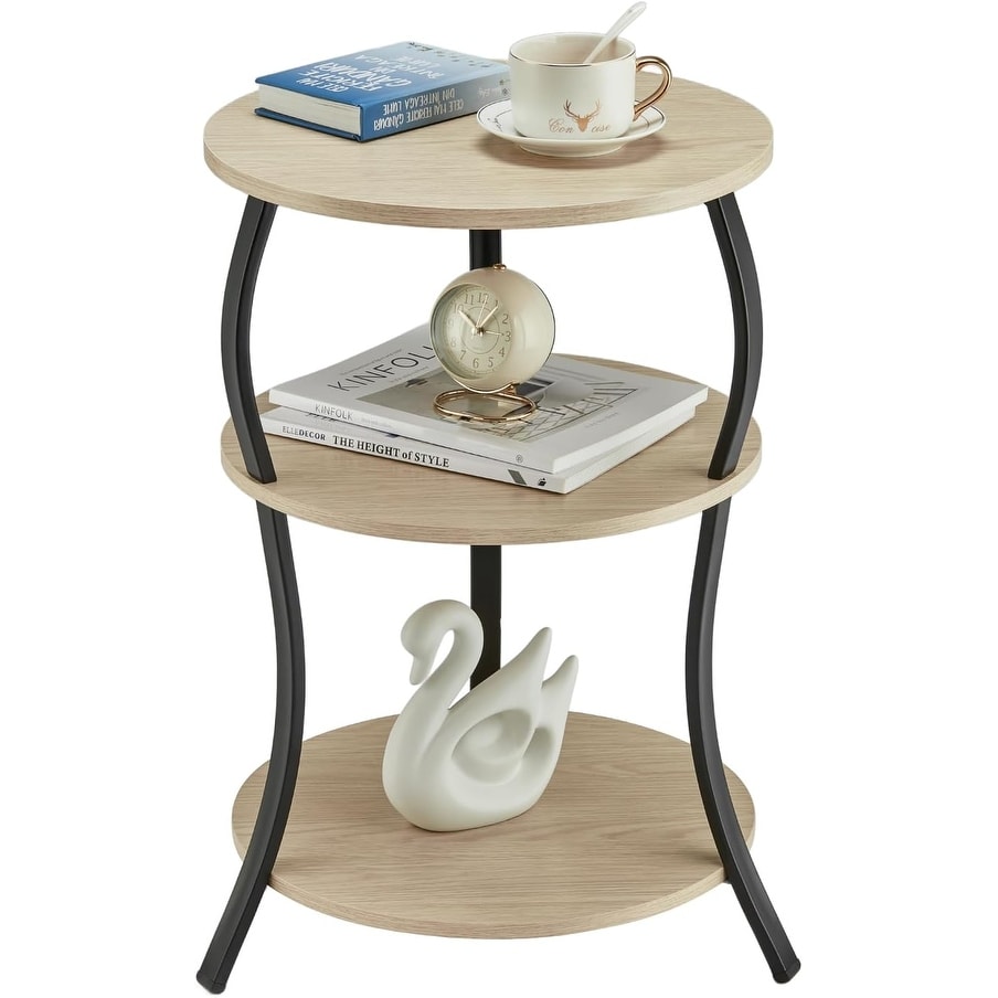 Vintage 3-Tier Round End Table with Storage Shelf - Oak Finish, 15.75x24 Inches