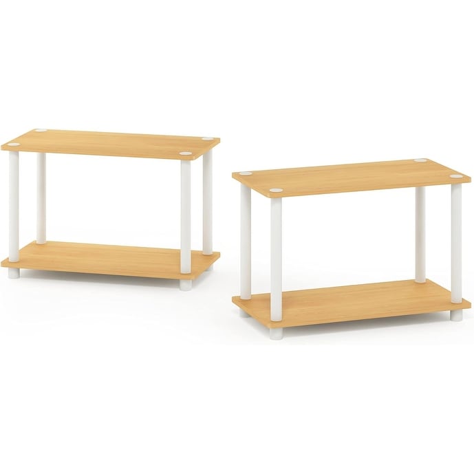 Simple 2-Tier Wood and PVC Tube Shelves/End Tables Set