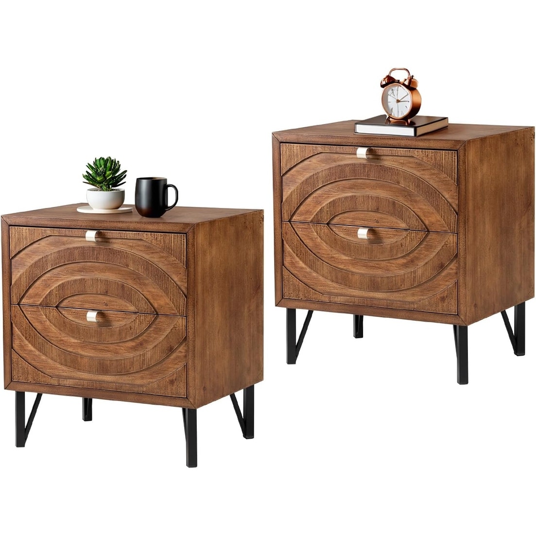 Set of 2 Rustic Vintage Nightstands with Storage Drawers, Easy Assembly, Brown Circle Pattern