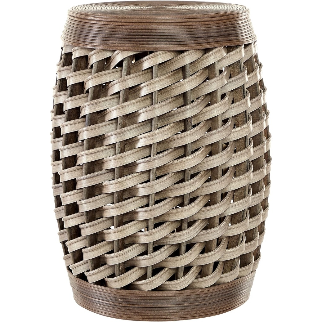 Round Rattan Accent Table Set of 2, 14x19 Inches, Brown