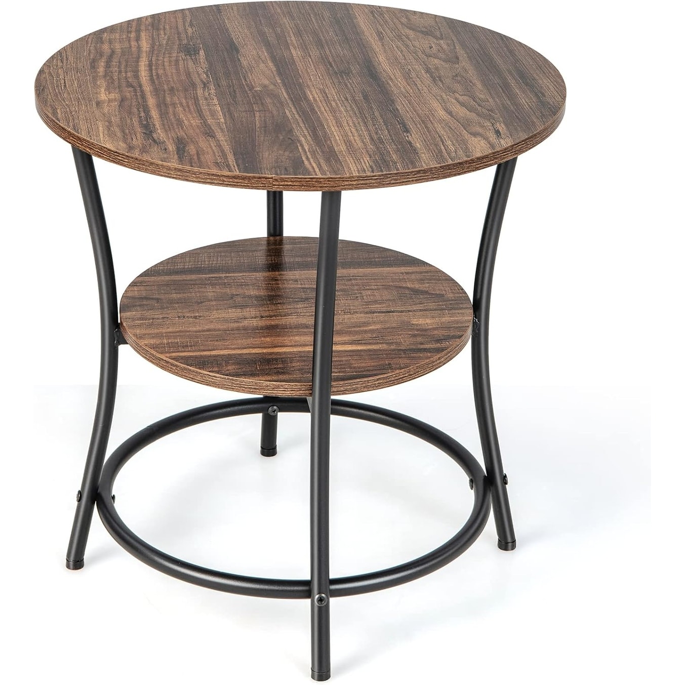 Round End Table with 2 Storage Shelves, Sturdy Metal Frame, Versatile for Bedroom Living Room, Easy Assembly, Brown