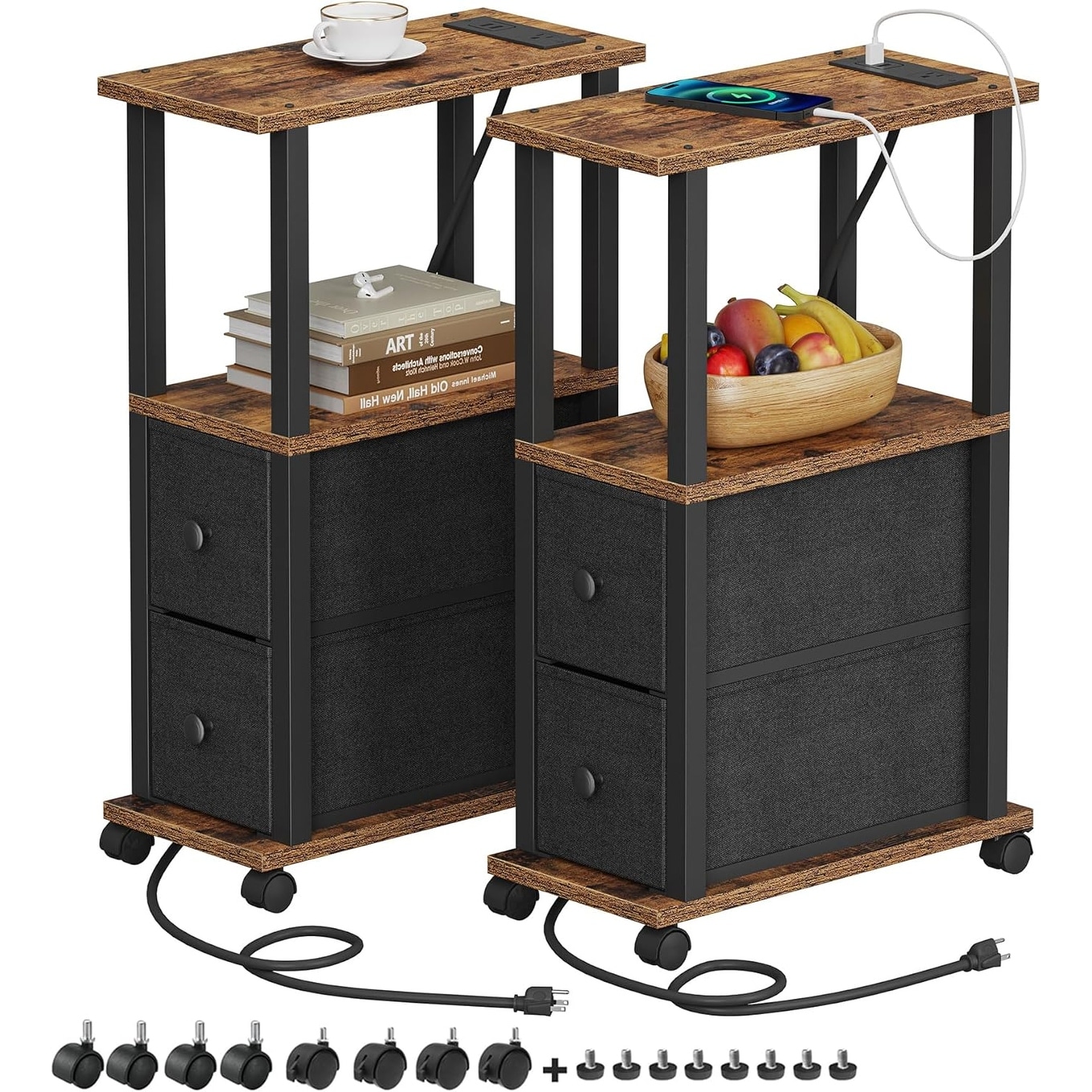 Slim Side Tables with Charging Station, USB Ports, and Wheels, Set of 2 for Small Spaces