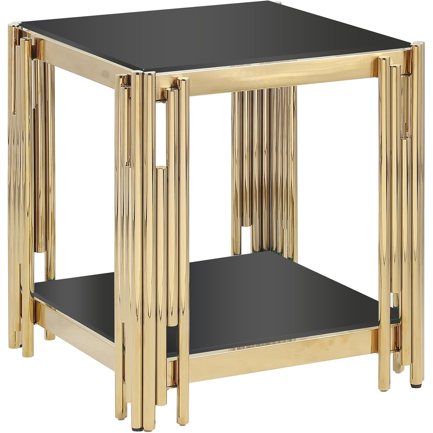 Modern Gold & Black Glass End Table with Stainless Steel Frame, 2-Tier Nightstand/Side Table for Living Room & Bedroom