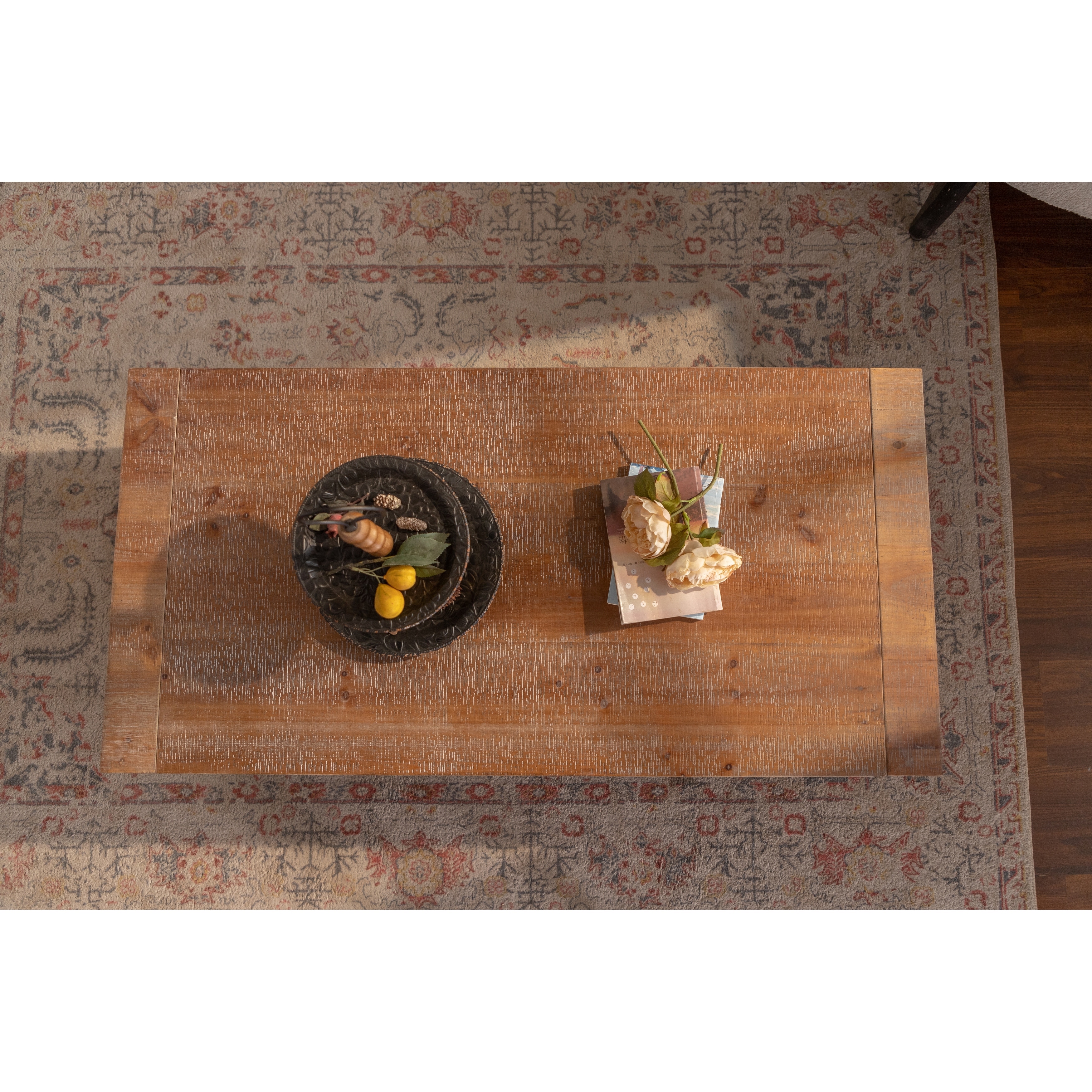 Solid Wood Rectangle Coffee Table With Solid Wood For Living Room Large 2-Tier Rustic Coffee Table With Storage Shelf Office