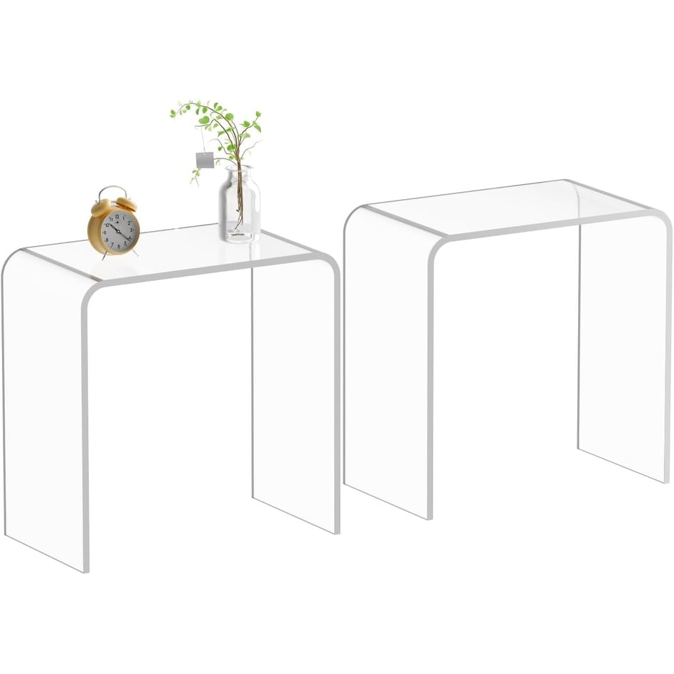Set of 2 Clear Acrylic Side Tables, 21inch H x 21inch W x 12inch D, Durable and Stylish for Home, Office, and Outdoor Use