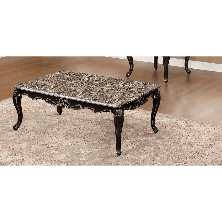 Transitional Style 2-Piece Coffee Table Set With Marble Top