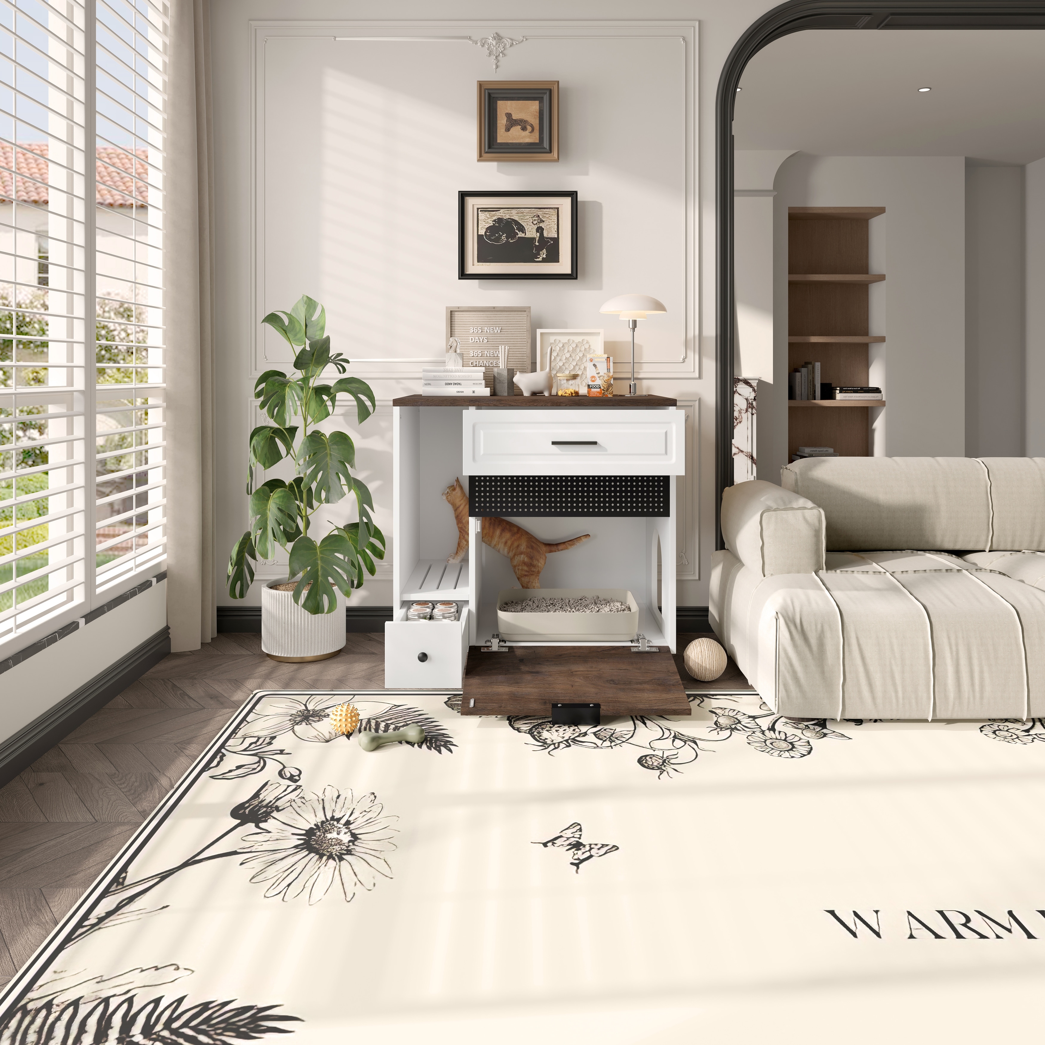 Cat Litter Box Enclosure Furniture With Two Drawers And Door End Table For Living Room