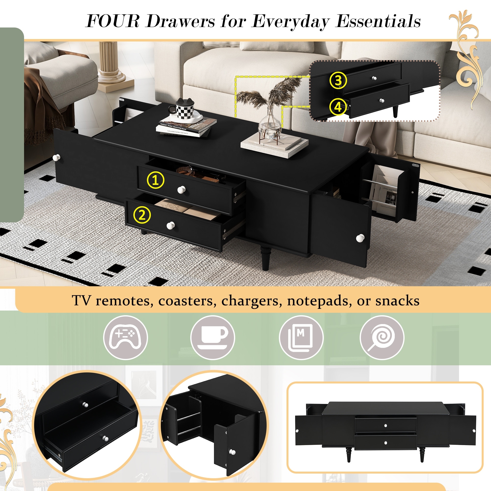 47.2" Rectangular Coffee Table with 4 Drawers and Two Side Storage, Modern Sofa Table Tea Table for Living Room Centerpiece