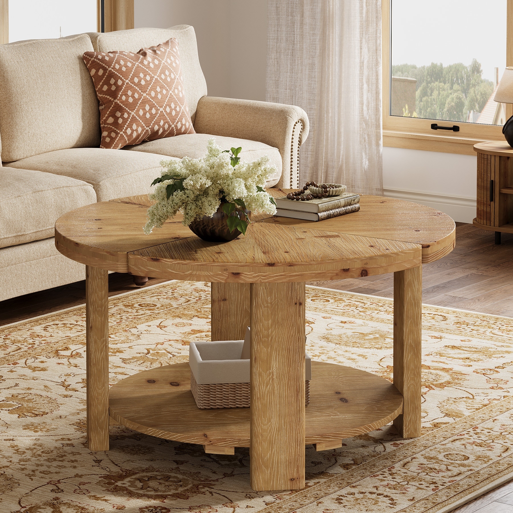 Solid Wood Coffee Table, Storage Boho Center Accent Table, Living Room Furniture