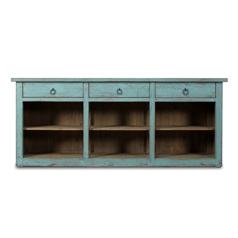 Approx. 91 Inches Wide Counter Table with Three Drawers Distressed Blue